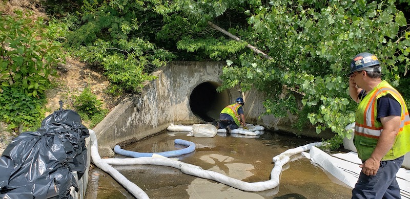 July 2, 2018 Hauppauge Fire Department responds to a truck leaking fuel on Arkay Drive. Units arrive to find that a tractor trailer struck a…