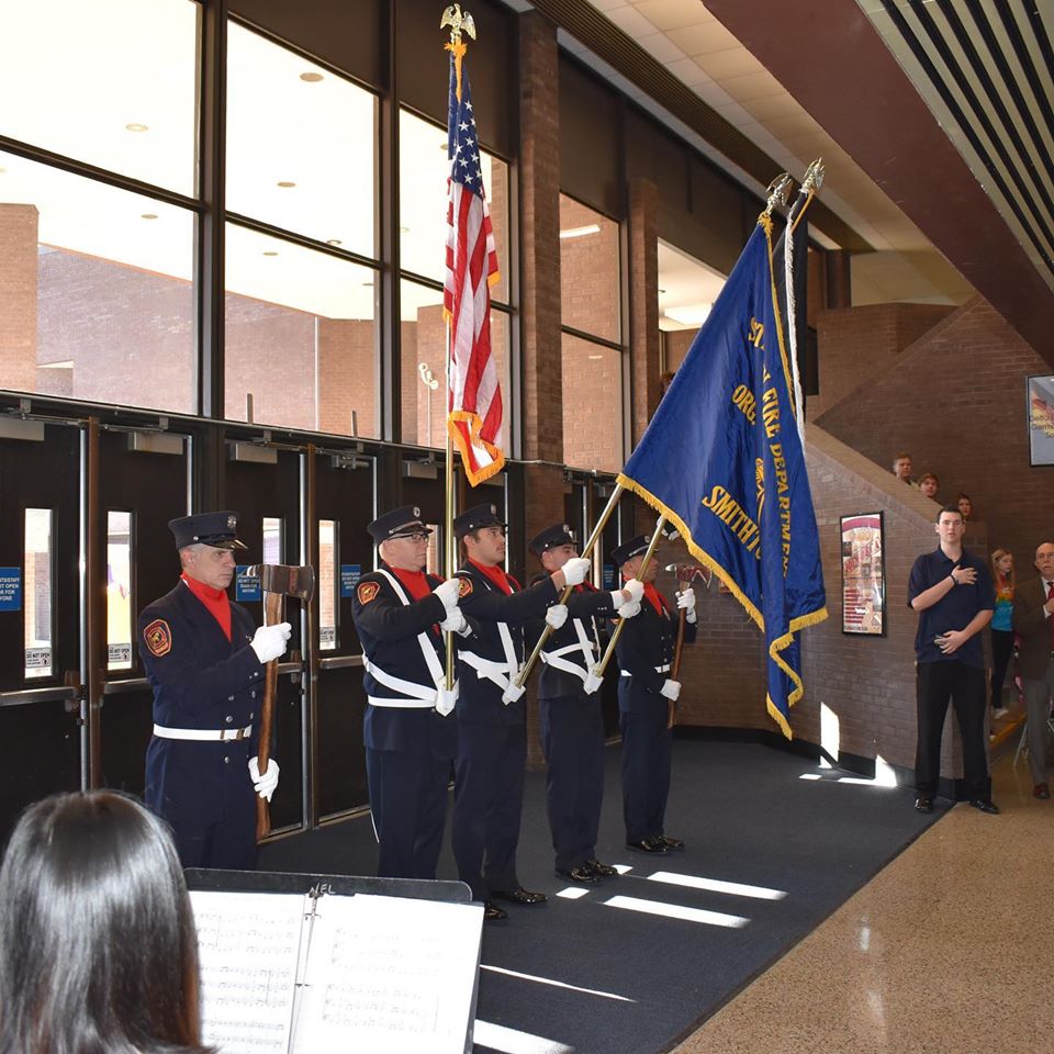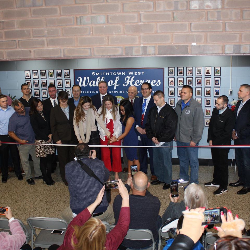 November 16, 2019 10:00 hours The Smithtown Fire Dept color guard was on hand at a ribbon cutting ceremony unveiling the newly installed “salute to the veterans wall of fame” at Smithtown High School West on Central Road. This display honors all veterans that attended the school.