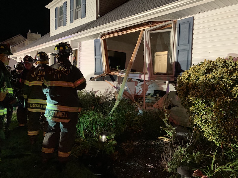 September 23, 2019 2249 hours. The St. James Fire Department responds to a report of a motor vehicle crash on Third Avenue near Fourth Street. Units arrive to find that the adult male operator of a Ford Excursion lost control of his vehicle when backing out of his driveway and slammed into the house across the street. The vehicle operator refused rescue but an adult male that was in the house was transported to the hospital for evaluation via ambulance. Smithtown Fire Marshals and a Building Inspector were called to the scene to follow up.