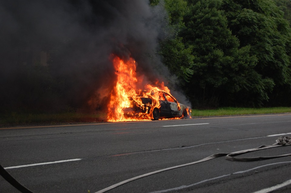 August 6, 2019 1128 hours. The Hauppauge Fire Department handles a vehicle fire on the eastbound Veterans Highway shoulder between Gatewood Drive and Autumn Drive. Vehicle was a 2009 Crown Victoria owned and utilized by the Suffolk County Dept. of Probation. The officer operating the vehicle was uninjured. The cause was an undetermined mechanical failure in the engine compartment possibly related to the ac compressor. Engines 4 & 3 operated at this incident under the Command of Engine 1 Captain Patrick Sieczkowski/ Photos courtesy of 3840