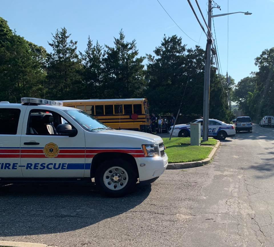 July 30, 2019 1643 hours. The Smithtown FIre Department is dispatched to a traffic collision at Terry Road and Route 347. Units arrive to find that passenger vehicle hit the back of a school bus loaded with passengers. While no one was trapped, FD personnel had multiple patients on their hands. Smithtown used three of their ambulances, St. James FD sent an ambulance and the Nesconset Fire Department sent an ambulance. A total of 10 patients were transported to St. Catherines Hospital, thankfully all with minor injures. Commack Volunteer Ambulance sent a unit to cover the district during the incident. Smithtown FD photos.