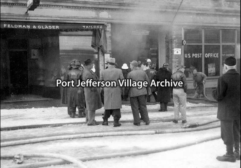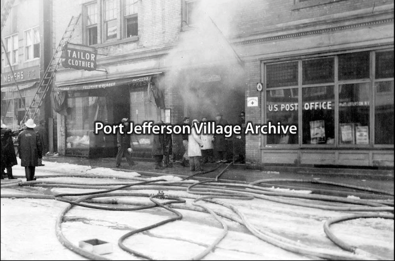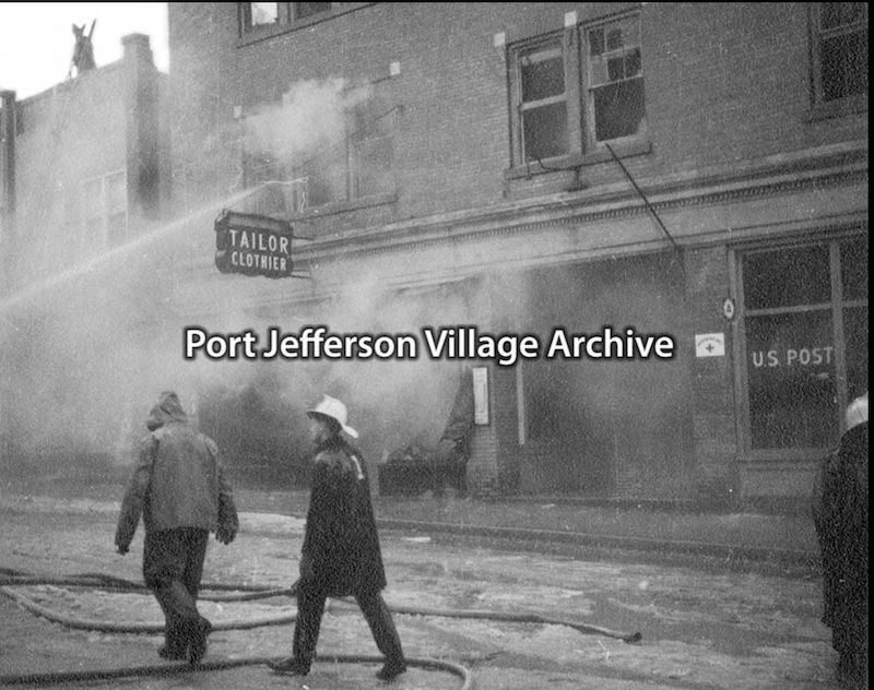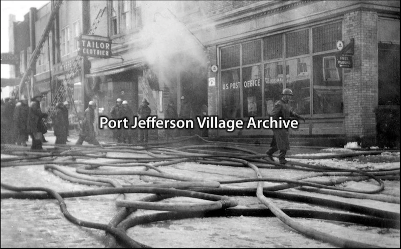 January 20, 1948 A fire that reportedly started around heating equipment, gutted the 3 story Port Jefferson Post Office building located at 202 Main Street on this date. Port Jefferson FD was assisted at the scene by Setauket and Stony Brook and kept the fire from spreading and brought it under control in the early afternoon. Though firemen poured tons of water on the charred interior, the fire broke out again on Wednesday (1-21) morning on the upper floor. That flare up was quickly extinguished.