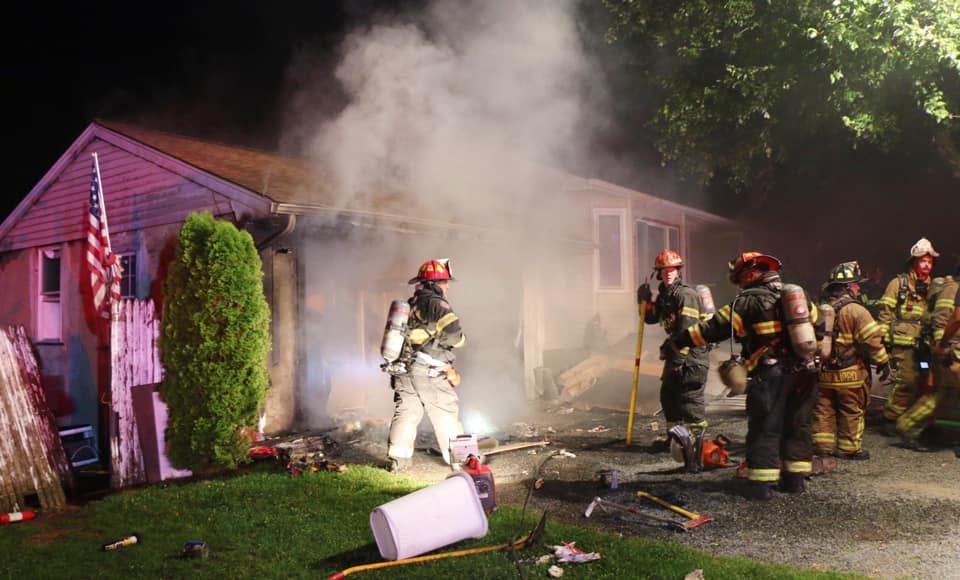 July 5, 2019 2255 hours. Farmingville Fire Department is dispatched to a report of a house fire at 238 Horseback Road. Units arrive to find an active fire in the garage attached to a single story private dwelling. Crews forced entry into the garage and the fire was placed under control within 40 minutes. Mutual aid was provided by Centereach, Holtsville, Ronkonkoma, Selden (engine to the scene) and North Patchogue to cover. One occupant was treated for smoke inhalation. Fire Marshals from the Town of Brookhaven are investigating. Photos Courtesy of Bryan Lopez-Emergency Patches.