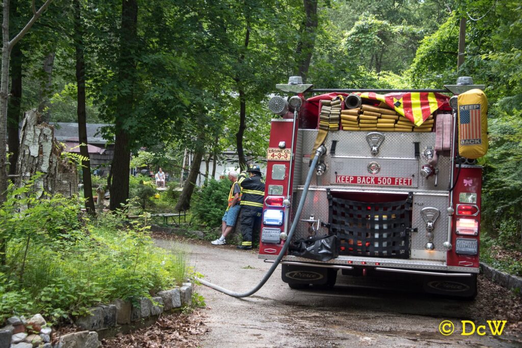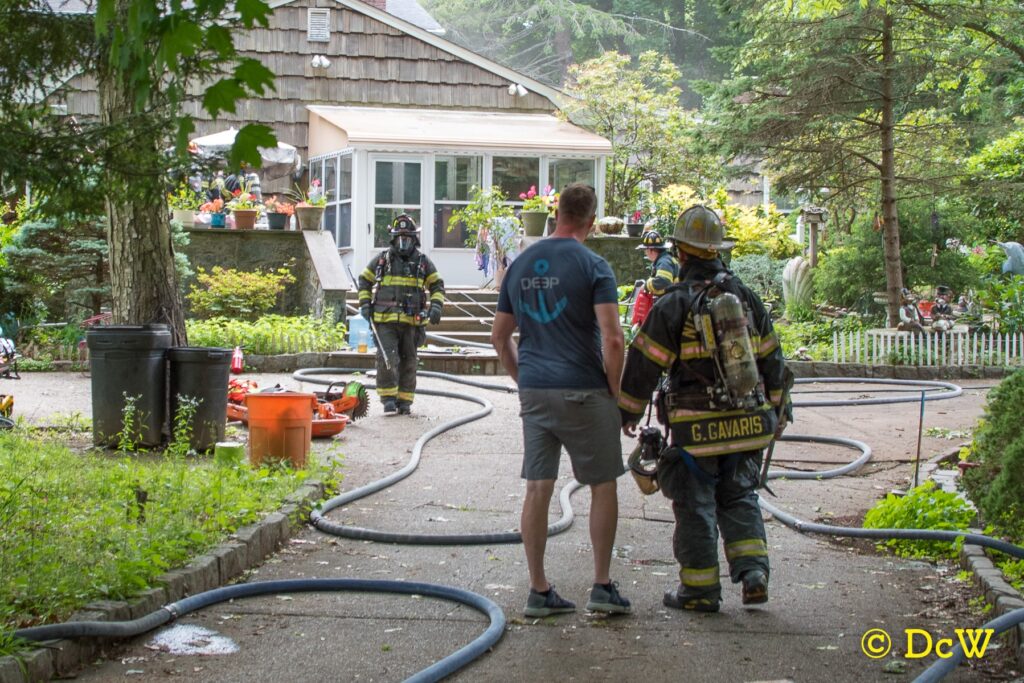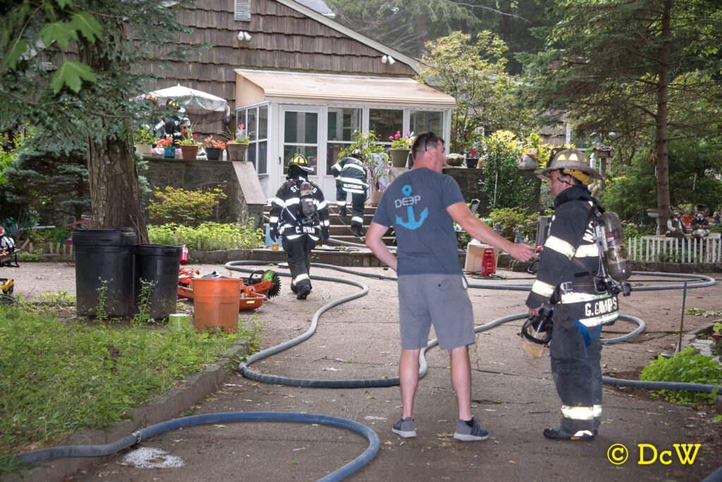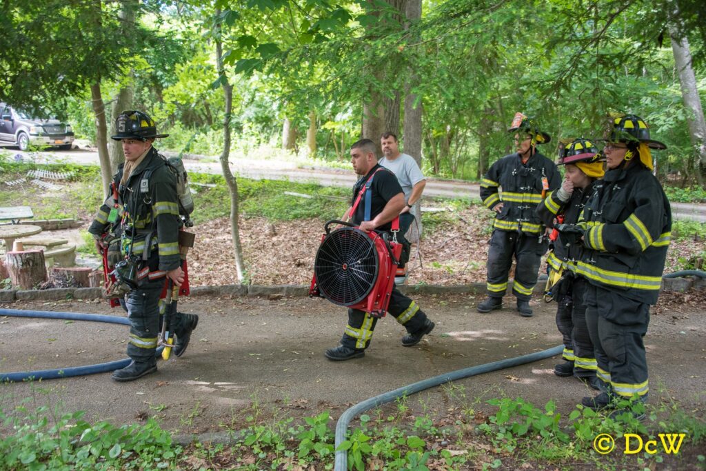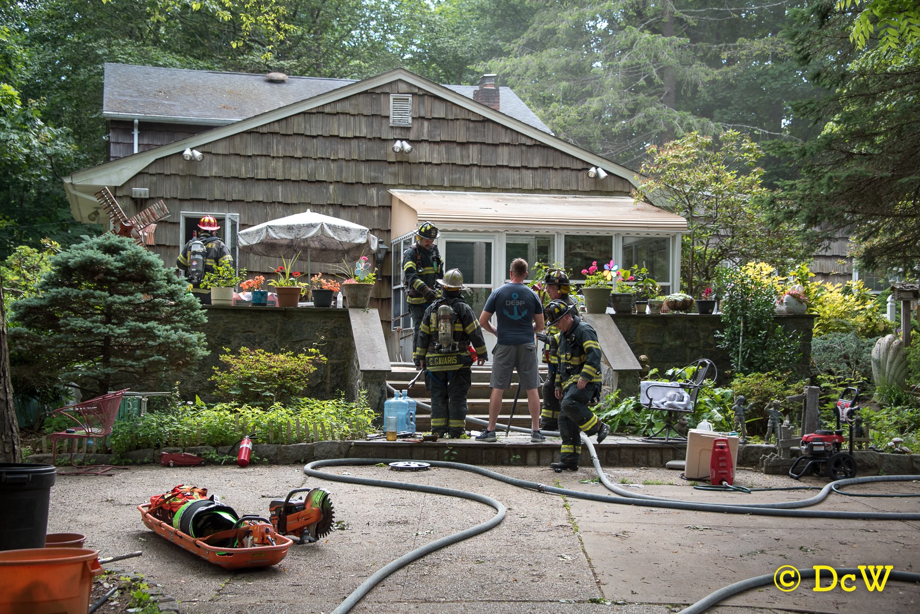 June 15, 2019 1550 hours. The St. James and Nesconset Fire Departments were dispatched to a report of a house fire at 12 Three Sisters Road in the St. James Fire District. St. James Assistant Chief John Gonzales was the first to arrive and advised of smoke coming from a two story private dwelling. Shortly thereafter, Chief Gonzales transmitted the working fire, adding Stony Brook, Nissequogue, Smithtown and Centereach Fire Departments to the call. Crews stretched a line off of St. James engine 4-3-3 into the basement. The fire was extinguished without incident. Crews searched, overhauled and vented the house. The scene was secured and a Fire Marshal from the Town of Smithtown Department of Public Safety was requested. This fire is not considered suspicious at this time. There were no injuries. Photos courtesy of Dennis Whittam.