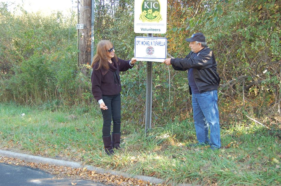 June 10, 2019 A new sign in remembrance of Ex-Captain Michael Tufarella was installed by the Town of Islip on the South side of Kings Highway, just west of Wheeler Road. Mikes mom and dad, as well as other family members and Chief Raymond Germaine, Department Members, Ladies Auxiliary and Explorers post all participated in the small ceremony. Photos courtesy of 3840