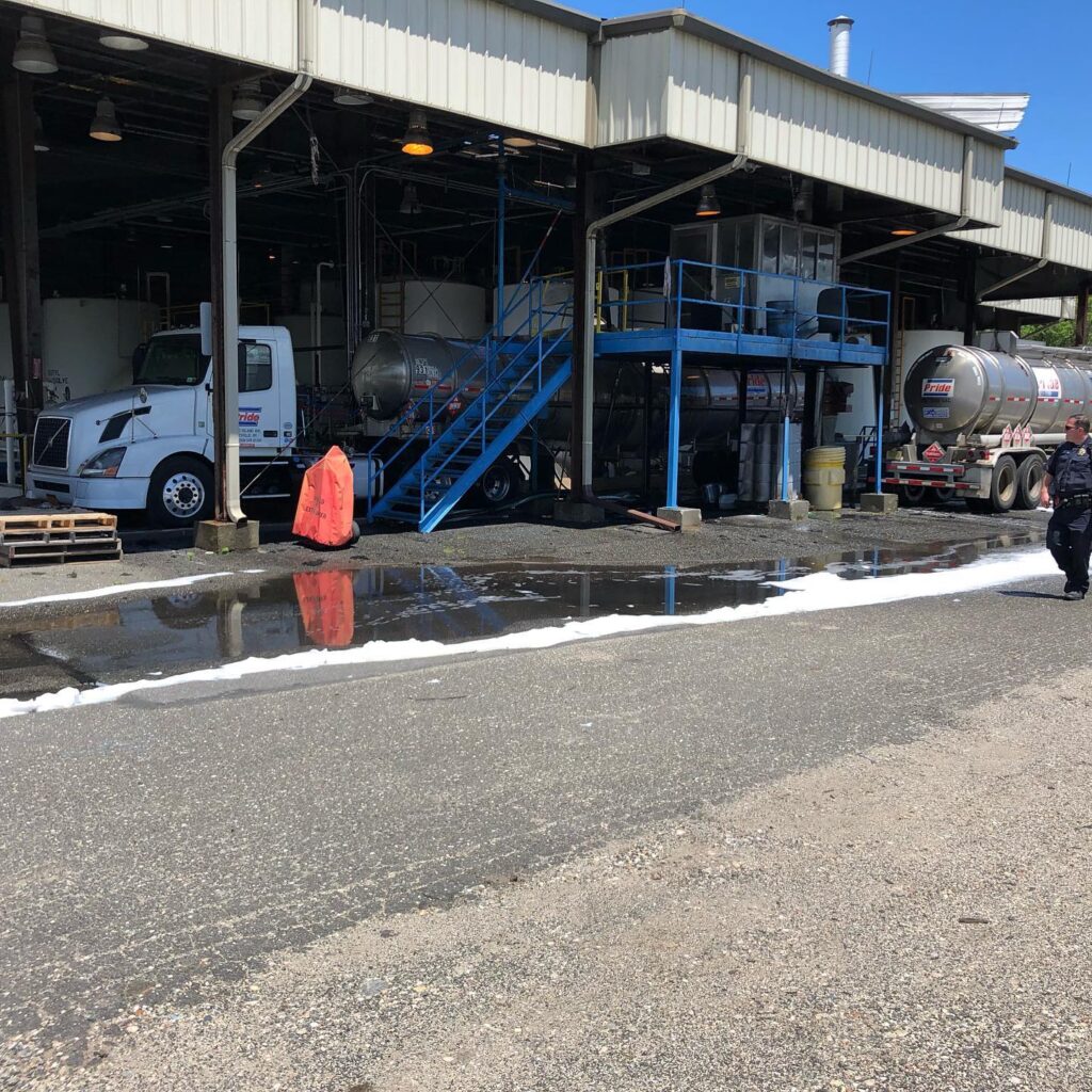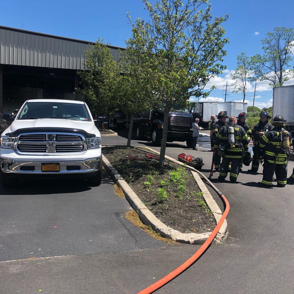 May 24, 2019. At 1217 hours today, members of the Holtsville Fire Department responded to an automatic fire alarm at Pride Chemical and Solvent Company at 6 Long Island Avenue. Upon arrival of first due Engine 6, it was discovered that a small explosion involving isopropyl acetate had occurred inside of a tanker, resulting in an activation of the buildings suppression system. Units operated on scene for approximately 90 minutes with mutual aid from Holbrook, Ronkonkoma Medford, Farmingville and Medford ambulance. Fire Marshals from the Town of Brookhaven were called in to handle the investigation and to deal with the haz-mat component. Photos courtesy of the Holtsville FD Facebook Page