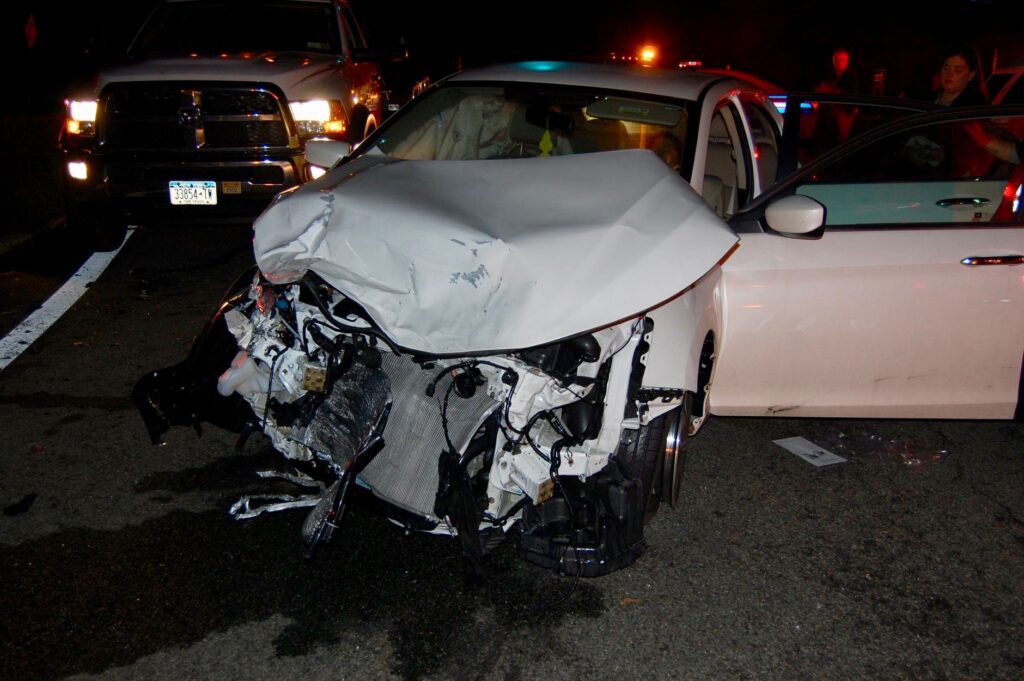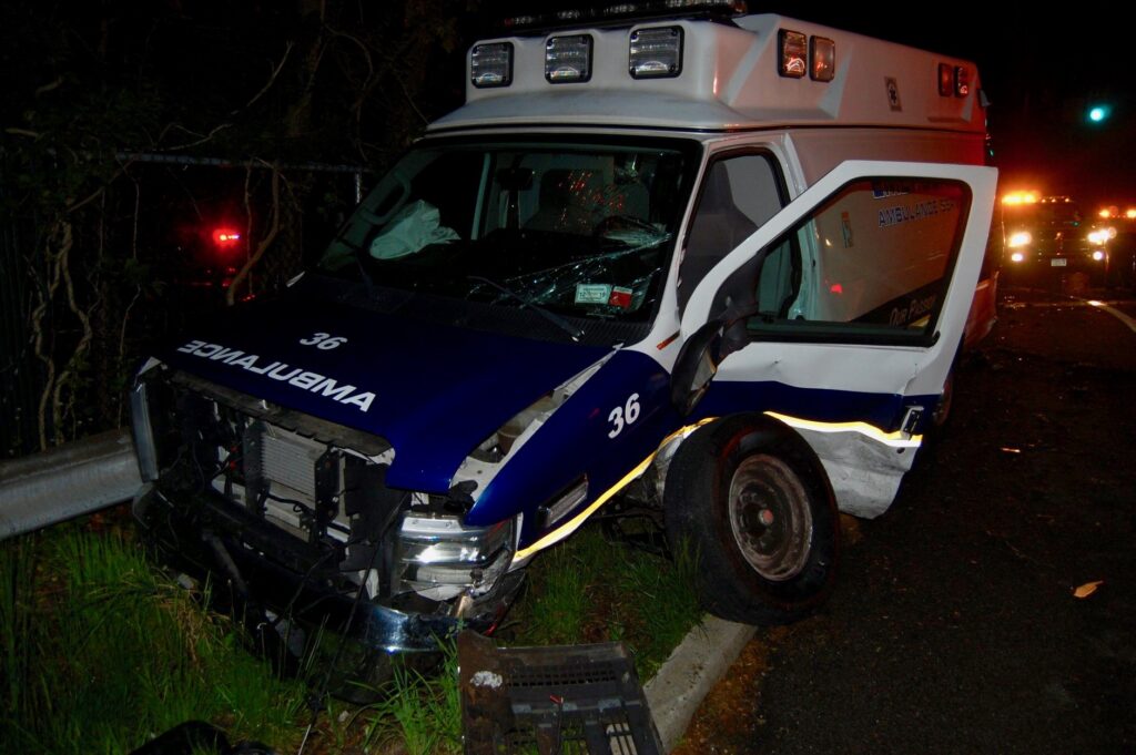 May 23, 2019 2245 hours. The Hauppauge Fire Department responds with Central Islip Hauppauge Community Ambulance to a traffic collision on Express Driveway South at Lincoln Blvd. Units arrive to find a crash involving a passenger vehicle and a private ambulance. The driver of the car suffered injuries but the EMS personnel on the ambulance were uninjured. There was no patient in the ambulance at the time of the crash. Hauppauge FD Chief Germaine operated with engine 13 and Rescue 9. Assistant Chief Martinez was also on scene.