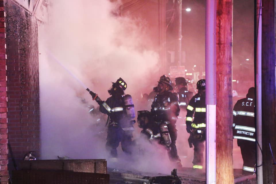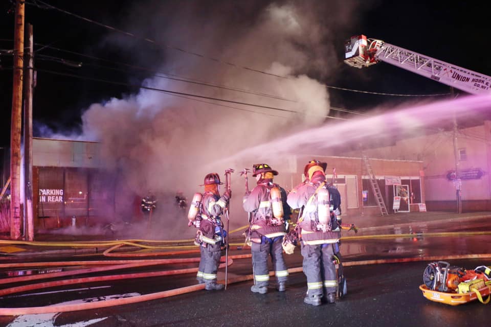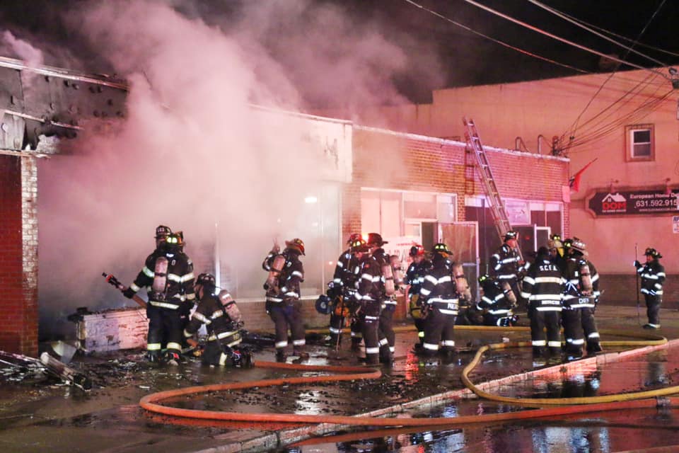April 13, 2021 0317 hours. The Lindenhurst Fire Department responds to a report of smoke in the area on Montauk Highway. After a quick search of the area, firefighters transmitted a working fire in a single story row of stores at 39 West Montauk Highway. Units from Lindenhurst, Copiague, North Lindenhurst and West Babylon Fire Departments operated under the command of Lindenhurst Chief Mike DeGregorgio. The building sustained extensive damage. No injuries were reported. Photos by Bryan Lopez (Emergency Patches)