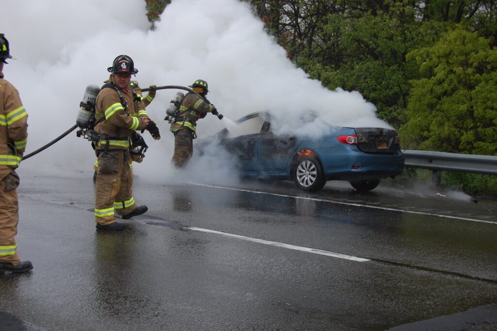 May 12, 2019 1407 hours. Hauppauge Fire Department responds to a vehicle fire on the westbound LIE shoulder between 57-56. The vehicle was a total loss. There were no injuries. Assistant Chief Ron Walker operated with units 3-8-13 and 3-8-14. Photos courtesy of 3840
