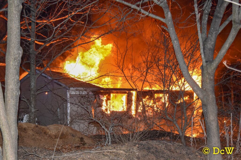 April 1, 2019 0534 hours. Centereach Fire Department responds to a report of a brush fire in the vicinity of North Washington Avenue and Oxhead Road. Units arrive and after a brief search of the area, find a house burning at 199 North Washington Avenue. The alarm is re-toned as a structure fire and mutual aid is requested from Ronkonkoma, Holtsville, Farmingville, Selden, Setauket and Stony Brook to the scene. Holbrook FD sent an ambulance to cover and Terryville sent an engine to cover. The fire was placed under control within 35 minutes. All units released at 0820 hours. The house was a total loss. Town of Brookhaven Fire Marshals and Suffolk Police Arson Detectives are investigating. There were no injuries. Photos courtesy of Dennis Whittam.
