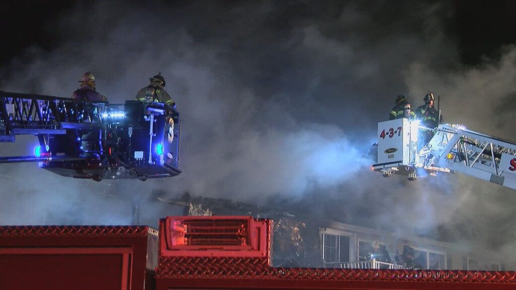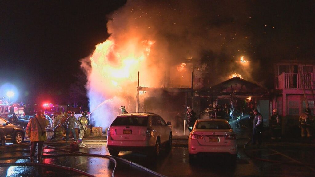 March 17, 2019 0053 hours. Lakeland Fire Department responds to the Colony Park Apartments at 500 Peconic Street in regards to a structure fire. Units arrive to find heavy fire throughout building 29. Prior to their arrival, an adult female who was trapped in here upper level apartment above the fire dropped her one year old child to an adult male on the ground and then jumped from the balcony. The woman and child were both transported via ambulance to Stony Brook hospital. An adult male was also transported to the hospital. Multiple hose lines and master streams were put into operation to fight the fire, which had completely consumed all of the apartment within the building. Mutual aid was provided by Hauppauge (ending to the scene), St. James FD (ladder to the scene), Bohemia FD, Nesconset FD (engine to the scene), Central Islip FD, Holbrook FD, East Brentwood FD (ambulance to cover). The fire was placed under control approximately two hours into the incident and units remained on scene until after 5AM. Photos courtesy of Stringer News Service