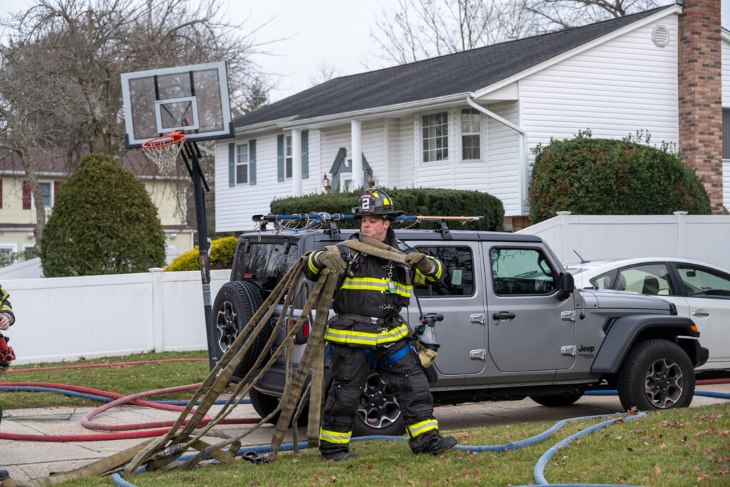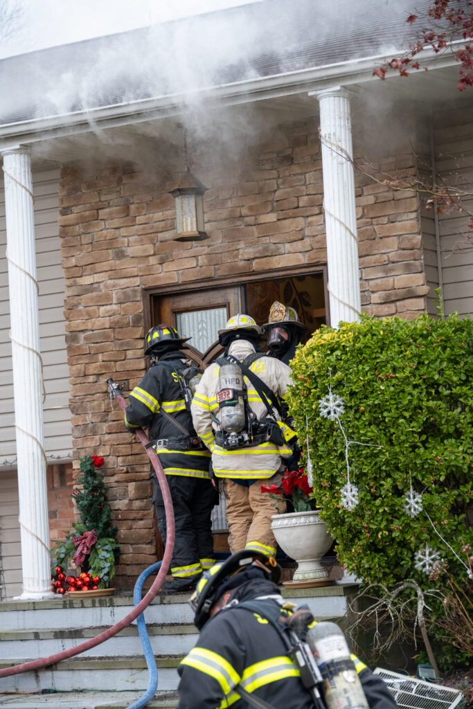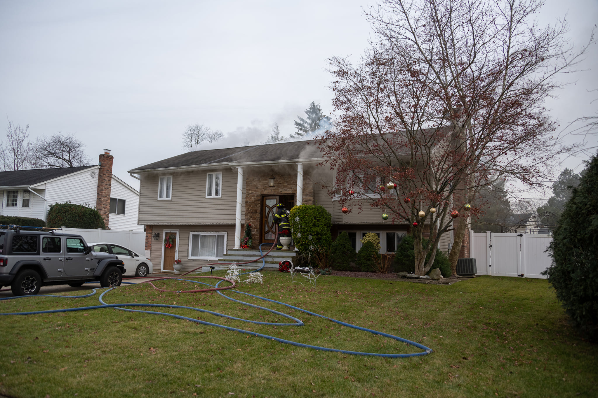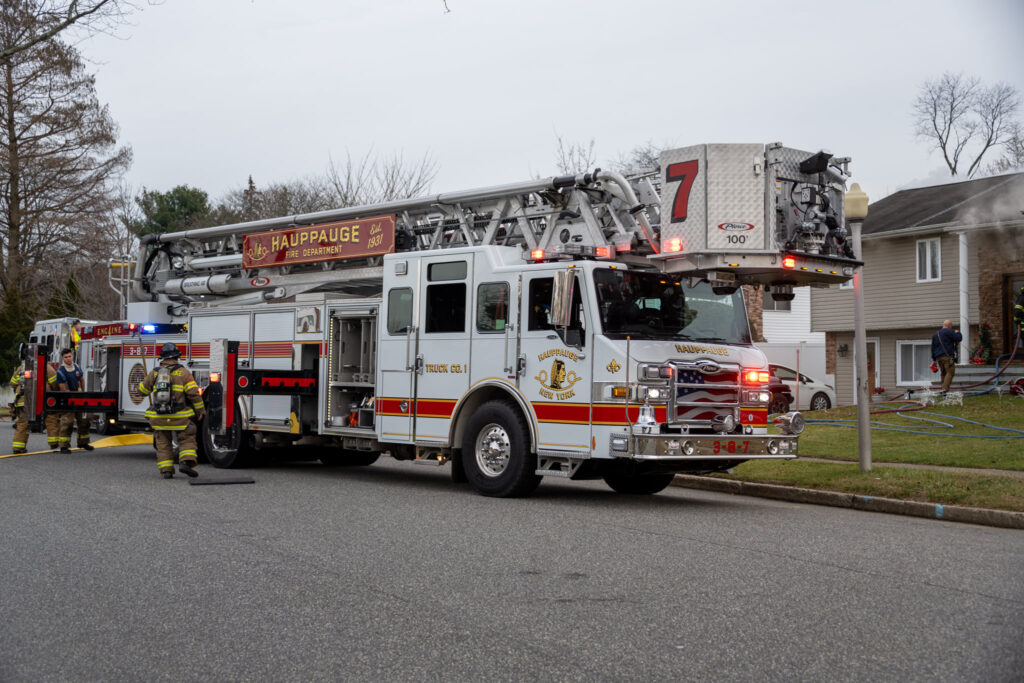 12-21-21. 1502 hours. The Smithtown Fire Department is dispatched to a reported house fire on South Plaisted Ave in the Hauppauge portion of their district. Assistant Chief Dongvort was first to arrive and advised of smoke showing and an active fire within the building. While Smithtown crews were still en-route, mutual aid was requested from the Hauppauge Fire Department for a ladder to the scene, Commack Fire Department for a quint and an engine to the scene and the St. James Fire Department for a RIT. Chief of Department Pat Diecidue arrived and assumed command of the operation. Crews stretched two hose lines. The fire was quickly extinguished, the house was ventilated and searched for victims. The fire was placed under control within 20 minutes and all crews cleared from the scene at around 5PM. The scene was turned over to Fire Marshals from the Town of Smithtown Department of Public Safety to investigate the origin and cause of the fire. There were no injuries. The Nesconset Fire Department sent a ladder and the Kings Park Fire Dept sent an engine to cover for Smithtown during the alarm.