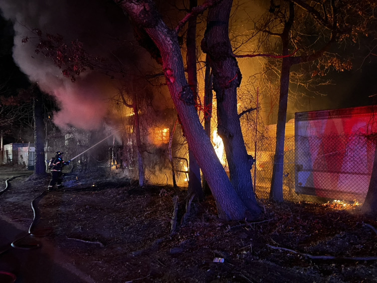 February 12, 2022. 2125 hours. The Islip Fire Department is dispatched to a report of smoke in the area of Freeman Avenue. Units arrive and quickly locate a box truck burning at All County Amusements at 201 Freeman. Crews stretched and operated two lines and extinguished the fire, which had also extended to a mobile office trailer. The East Islip Fire Department sent an engine to cover and Islip Exchange sent an ambulance to the scene. Suffolk County Police Arson Squad Detectives are investigating. Photos by Jared Medic 34