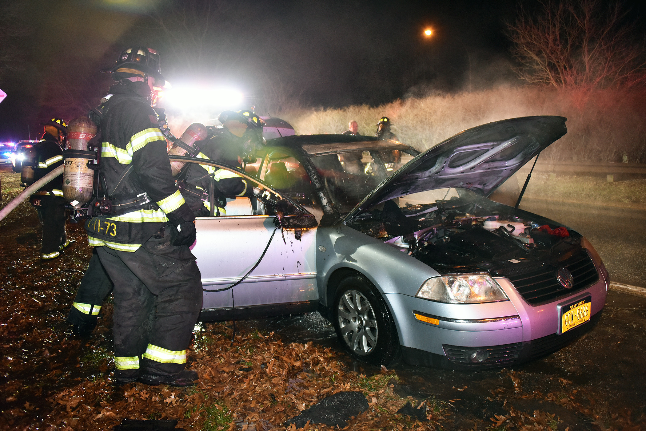 January 29, 2019 1857 hours. Commack Fire Department responds to a vehicle fire on the northbound Sunken Meadow Parkway near Harned Road. The fire was quickly extinguished by Evan Rolla and the rest of the crew from 2-11-3. Photo courtesy of Joe Sperber.