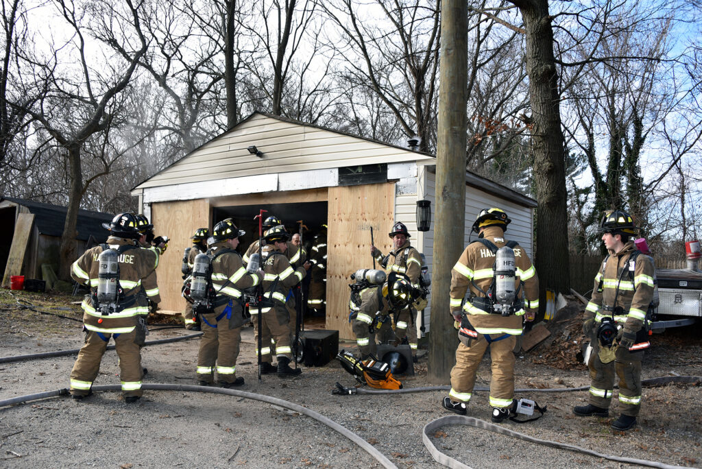 January 13, 2019 1047 hours. The Hauppauge Fire Department responds to 246 Atlantic Place in regards to a report of a garage fire. Units arrive to find the homeowner fighting a fire in a detached garage. FD personnel quickly finished the job with a hand line, saving the structure. The scene was secured and a Town of Islip Fire Marshal was called to the scene to investigate. There were no injuries. Photos courtesy of Joe Sperber.