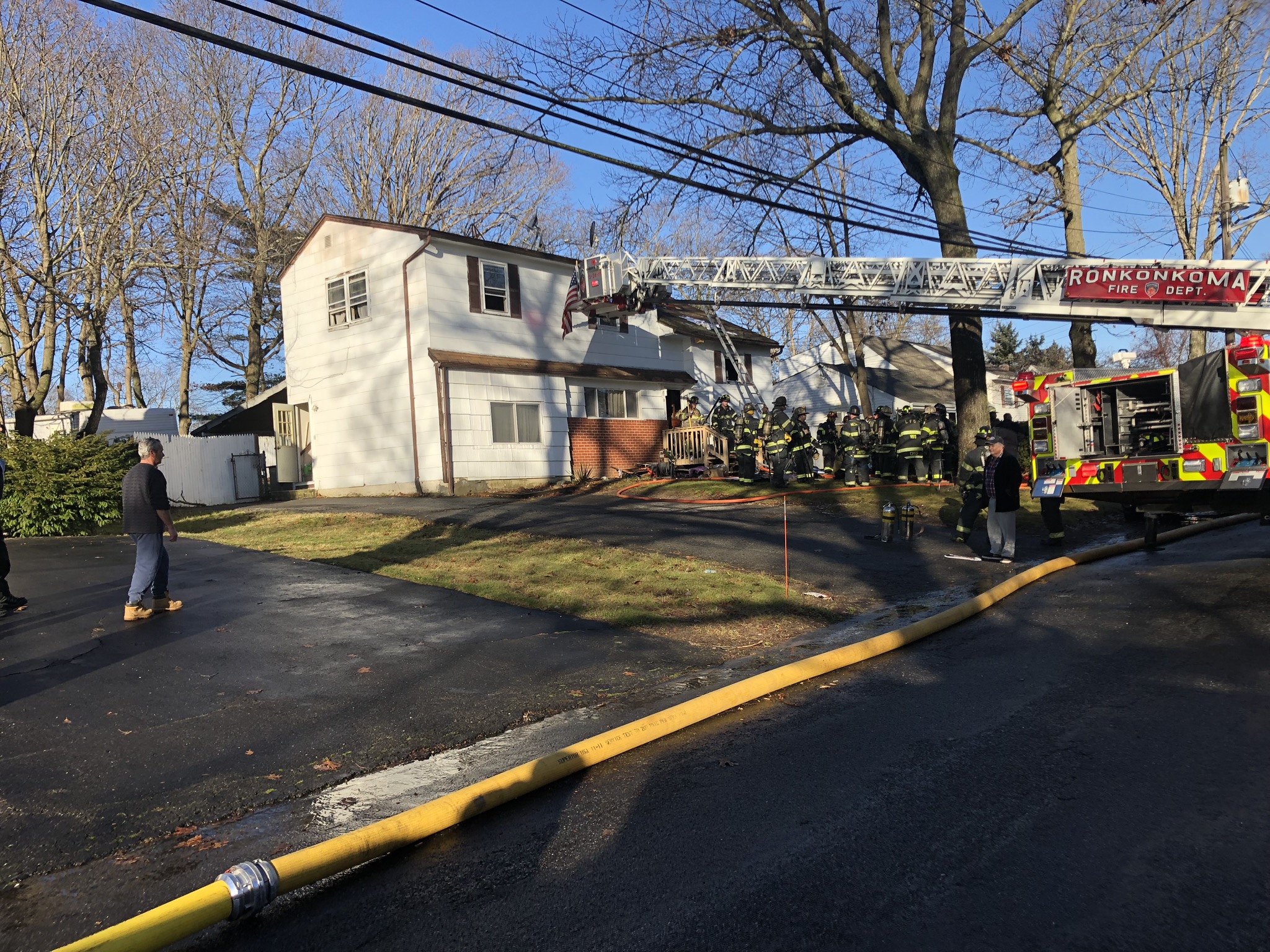 December 29, 2018 0840 Ronkonkoma, Nesconset, Farmingville and Lakeland Fire Departments are dispatched to a house fire at 12 Carl Street off School Street in the Ronkonkoma fire district. Units arrive to find an active fire on the upper level of a two-story occupied private dwelling. Crews pushed in with two lines and had the fire under control within 31 minutes of activation. All searches were negative, the truck crews opened the roof and FIre Marshals from the Town of Brookhaven and Detectives from the Suffolk Police Arson Squad are handling the investigation. Holtsville FD sent an engine to cover and Holbrook FD sent an ambulance to cover. First Assistant Chief Murray was the incident commander. Photos courtesy of Buff and Stuff.
