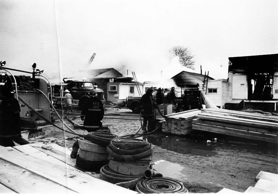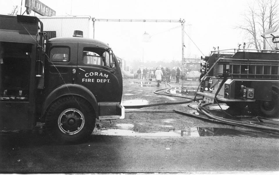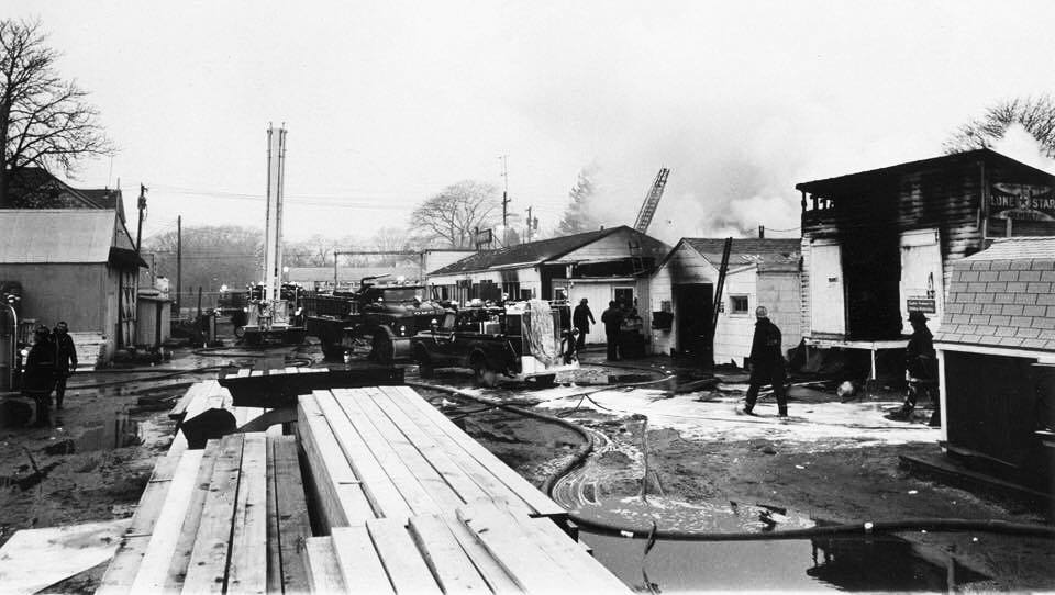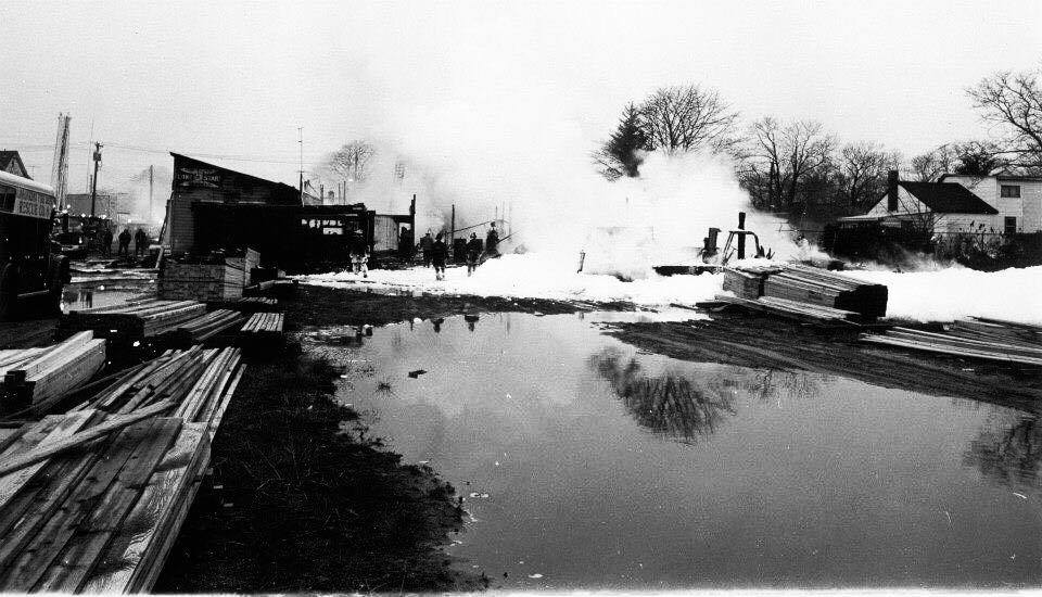 March 3, 1974 Ronkonkoma FD dispatched to a fire at the Family Lumber Yard at Hawkins Avenue and Railroad Avenue. Fire reported before dawn and took 3 hours to bring under control and even longer to finally extinguish. 200 firefighters from Ronkonkoma, Nesconset, Holtsville, Holbrook, Centerach and Coram battled the blaze. There were no hydrants in the area, so tankers were used to shuttle water from a hydrant a half mile away.