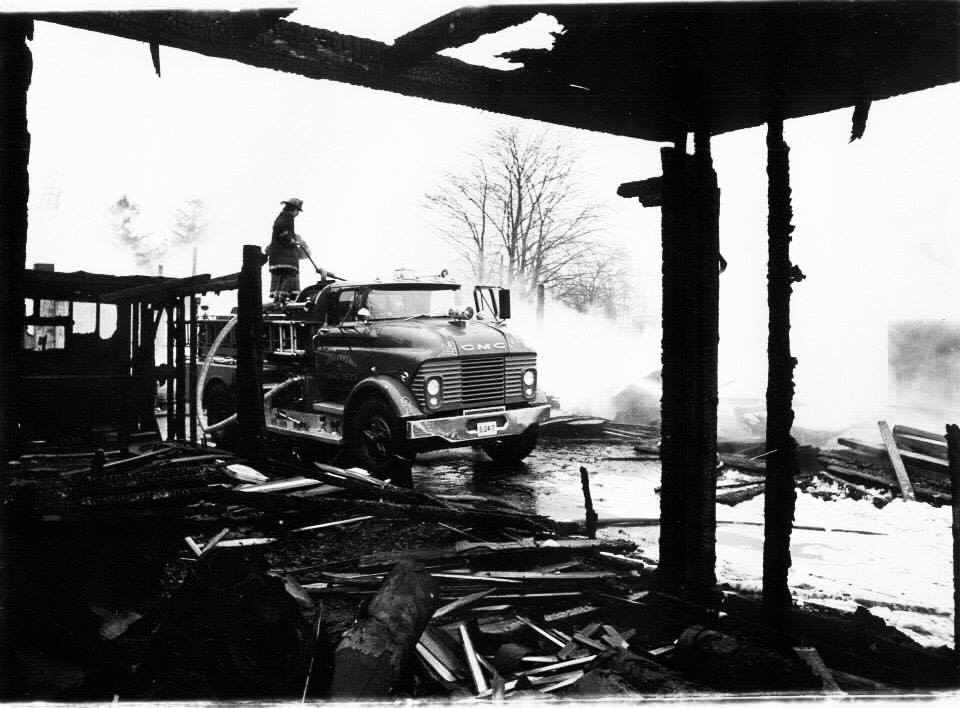 The fire destroyed an office building, storage shed and 3 vehicles. Photo and caption in 3-7-1974 Smithtown News. All photos in the linked folder are courtesy of Matthew Balkam