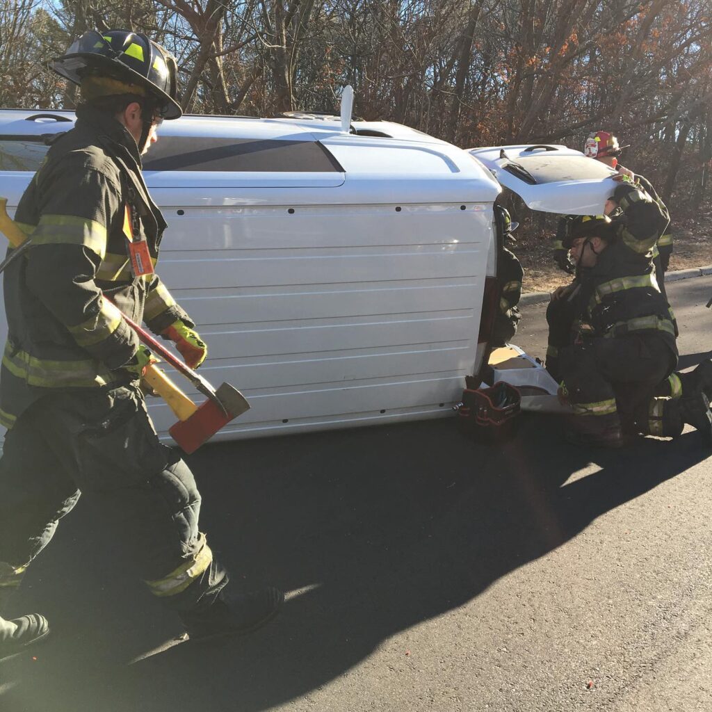 January 9, 2020 1019 hours. The Smithtown Fire Department is dispatched to a report of a motor vehicle crash at Beverly Road and Wichard Blvd. Units arrive to find a crash involving a single vehicle (a van), which was resting on its side. The lone occupant self extricated and was transported to the hospital by Smithtown Fire Department Ambulance 4-2-62. Crews from Engine 15 and Rescue 9 secured the vehicle. All units operated under the command of Asst Chief Timothy Duckham.