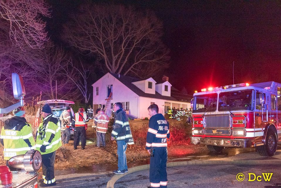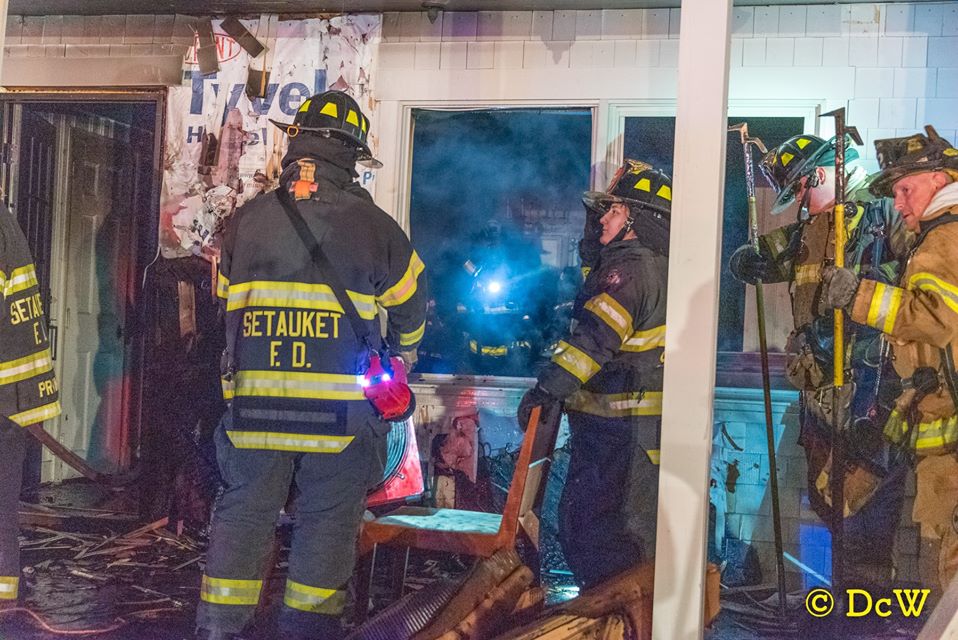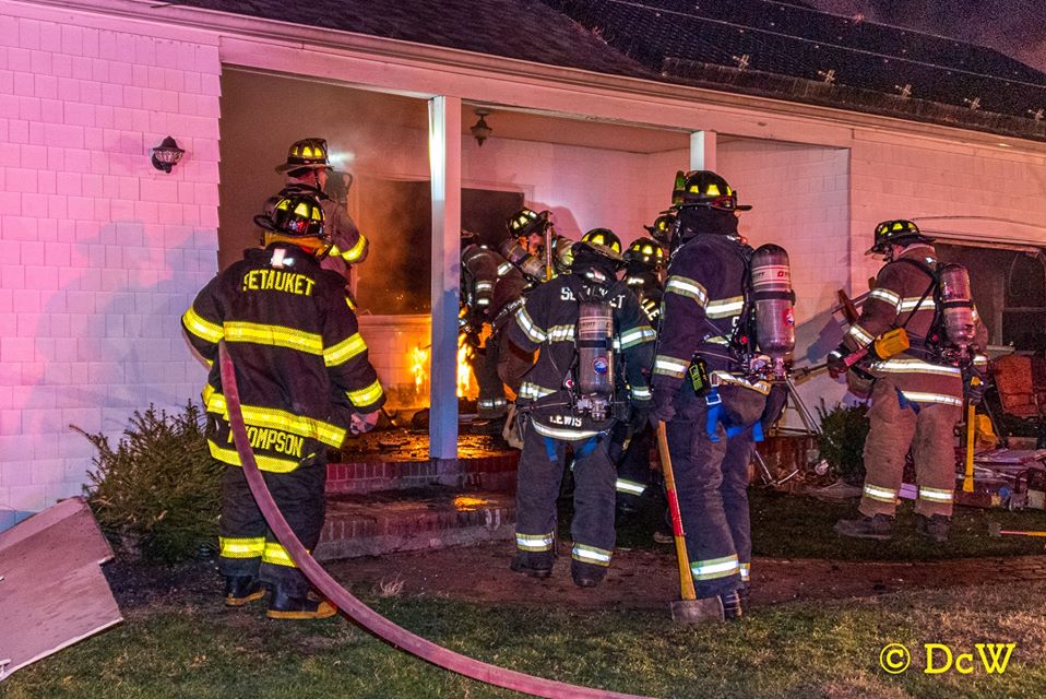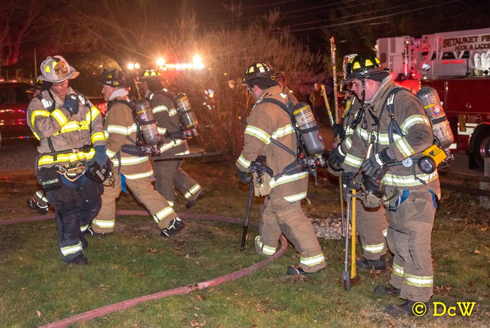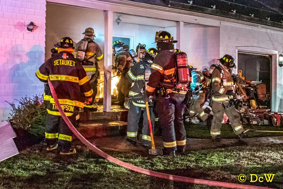Setauket Fire Department responded to a working fire in a home on Ivy Lane. With the help of mutual aid from Stony Brook, Port Jefferson, Terryville, Centereach, Selden and Port Jefferson Ambulance, the fire was brought under control within a hour. All photos courtesy of Dennis Whittam.