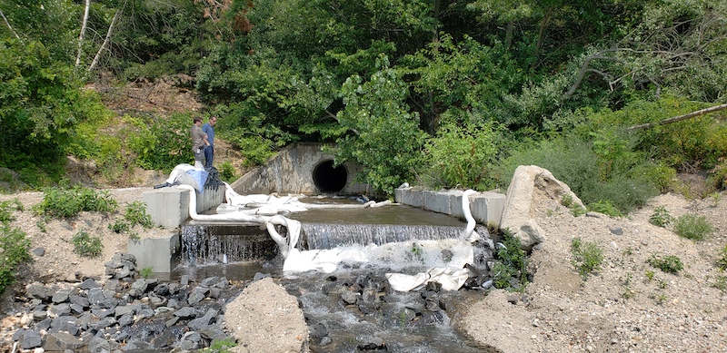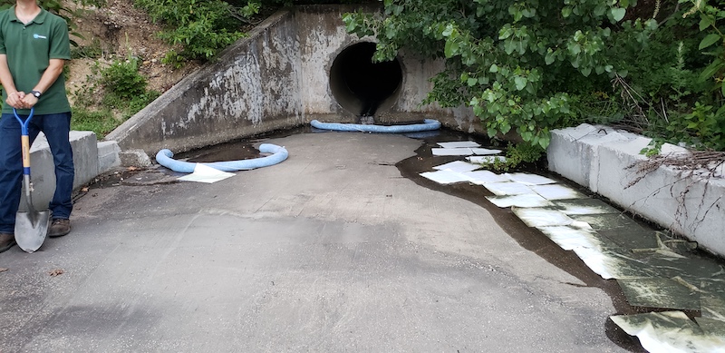 The DEC worked with the Town and with an authorized contractor brought in by the trucking company to mitigate the spill by scrubbing the roadway, pumping out the sewers and recovering the contaminated rocks and soil from within the sump. The sewer system was then flushed using fire hydrants.