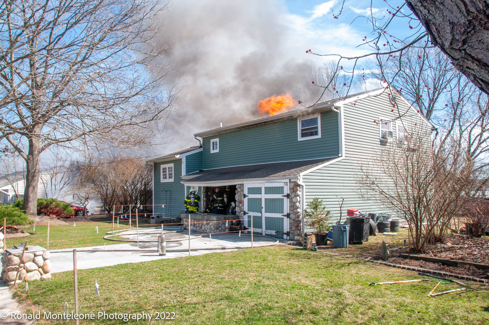 March 22, 2022 1405 hours. The Selden Fire Department is dispatched on multiple calls reporting a house on fire at 4 Anne Drive. Arriving units encountered a fence, car, shed and two story house burning. The fire was extinguished with assistance from the Coram, Centereach, Terryville, Holtsville and Farmingville Fire Departments. The fire was brought under control in approximately an hour. Crews from the Middle Island, Gordon Heights and Holtsville Fire Departments sent units to cover for the duration Fire Marshals from the Town of Brookhaven and Suffolk Arson Detectives are investigating. There were no reported injuries. Ron Monteleone photo.