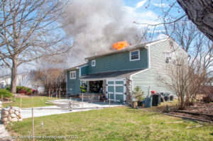 March 23, 2022 The Ronkonkoma, Lakeland, Nesconset, Farmingville and Holtsville Fire Departments are dispatched on multiple calls of a house fire at the corner of Lindell Avenue and Penn Street in Lake Grove (Ronkonkoma Fire District). Units arrived to find heavy fire throughout a two story private dwelling at 34 Penn Street. A quick interior attacked was abandoned due to a partial collapse. Crews went to an exterior operation utilizing two tower ladders and 4 landlines. The Centereach and Stony Brook Fire Departments were added to the incident as was the Holbrook Fire Department. All visible fire was knocked down within 90 minutes. Most of the house had collapsed, so the Chief requested an excavator from the Town of Brookhaven to knock the remainder of the structure down so that they could complete extinguishment. All fire departments secured from the scene by 1130 hours. The cause of the fire is under investigation by the Lake Grove Fire Marshals Office and Detectives from the Suffolk County Police Department Arson squad. The fire is believed to be accidental. There were no injuries.