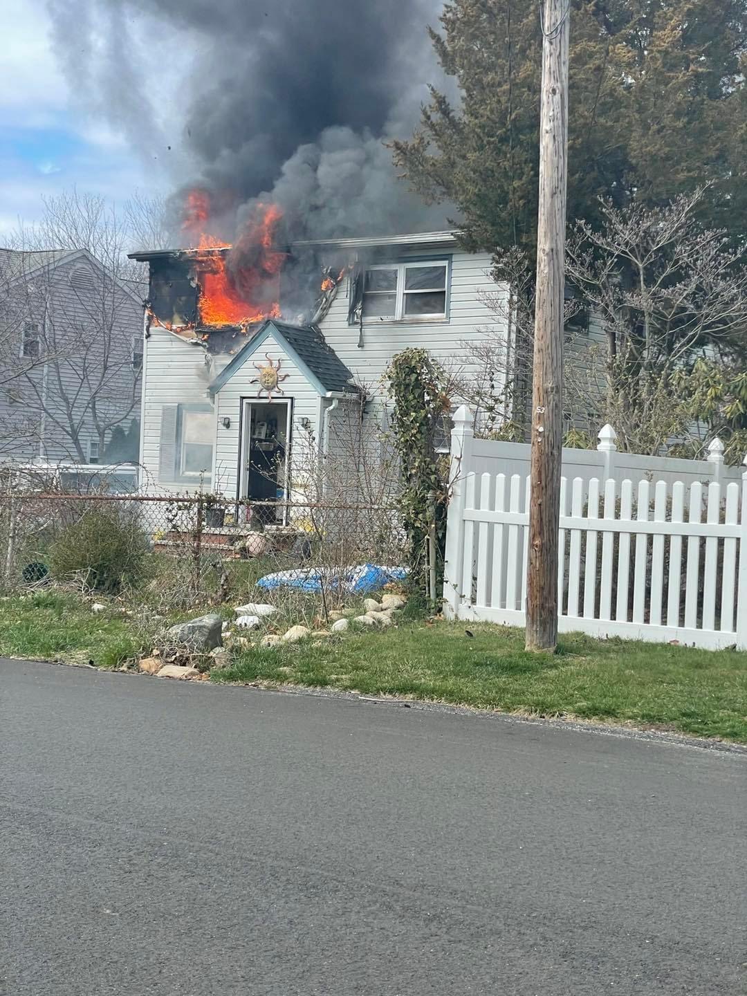 March 27, 2022 1417 hours. The East Northport Fire Department responds to 87 Soundview Avenue in regard to a structure fire. Crews arrive to find an active fire in a bedroom on the upper level of a two story private dwelling. The fire was extinguished within 10 minutes and the fire was placed under control within 20. Northport sent a RIT and Greenlawn FD sent an engine. The Commack Fire Department and CVAC sent crews to cover for the duration. Suffolk Police Department arson detectives and Fire Marshals from the Town of Huntington are handling the investigation. Photo from the East Northport FD Facebook Page.