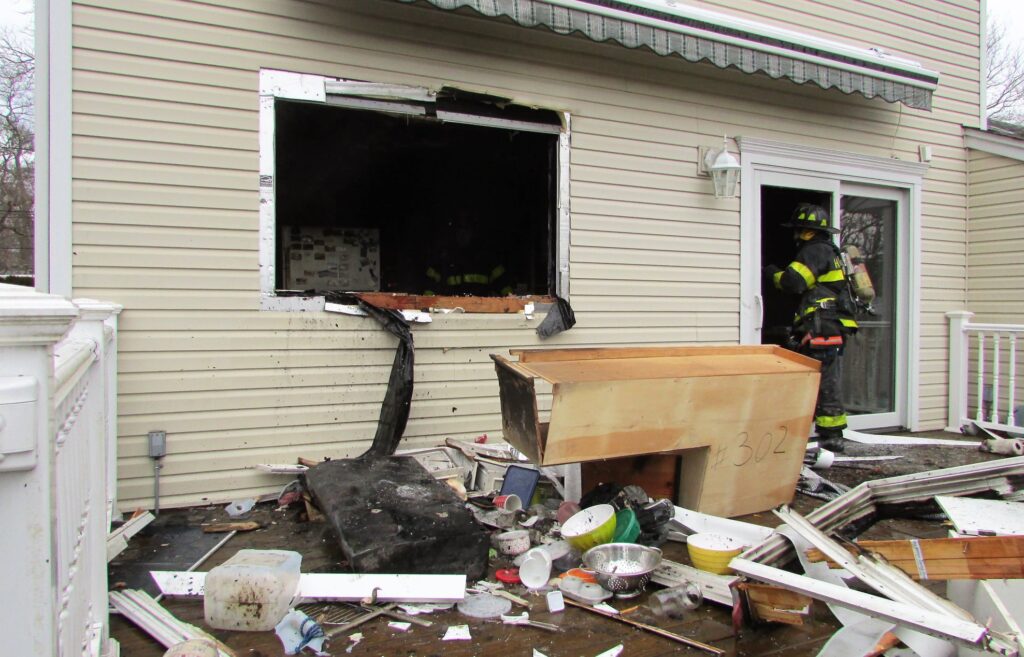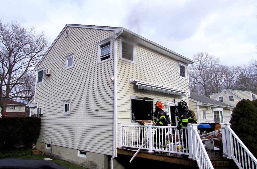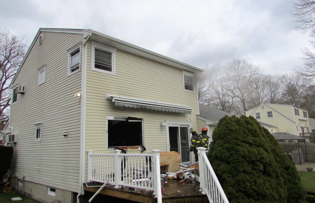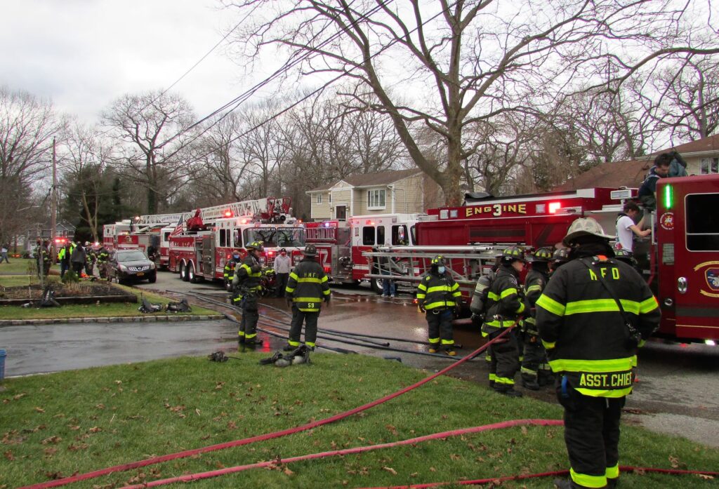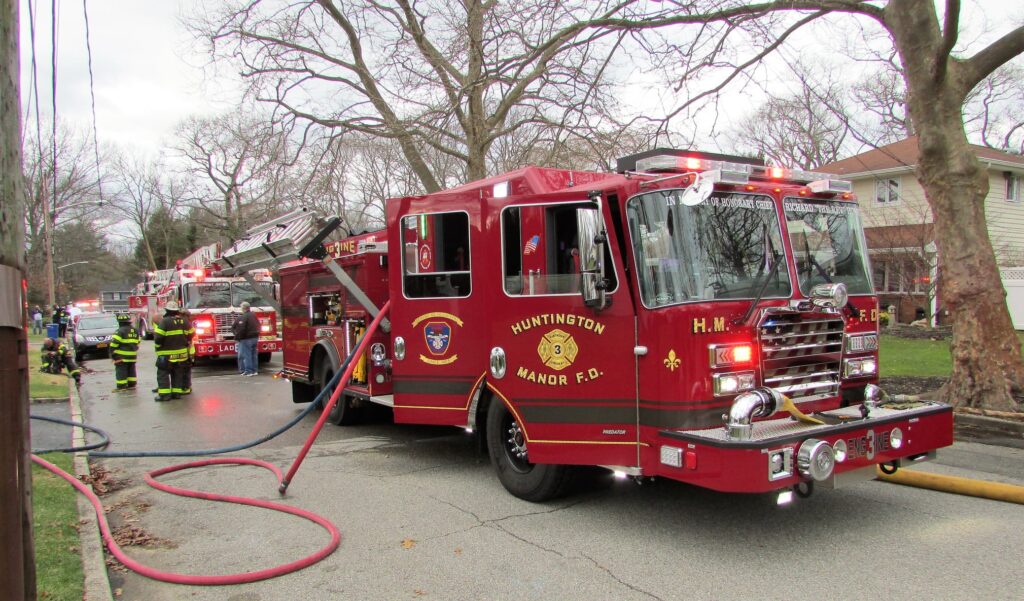 Huntington Manor firefighters were dispatched to a home on Cortland Court this afternoon for a report of a structure fire. Arriving first on scene, Assistant Chief Jim Glidden advised he had smoke showing and transmitted a Signal 35 (working fire). Two hose lines were stretched off Engine 3 and an aggressive interior attack was instituted containing the fire to the kitchen which was the room of origin. Huntington Manor was assisted at the scene by the Melville and Greenlawn Fire Departments. E.M.S. personnel from the Huntington Community First Aid Squad evaluated two occupants of the home. The cause of the fire is undetermined but not considered to be suspicious. There were no injuries. Photos and information from the Huntington Manor Fire Department Facebook Page.
