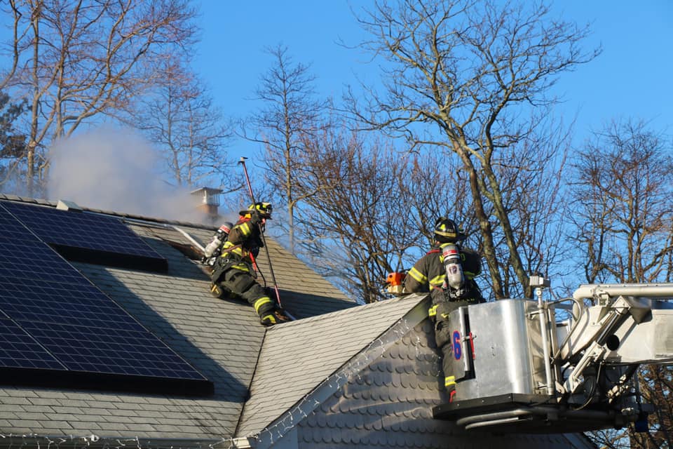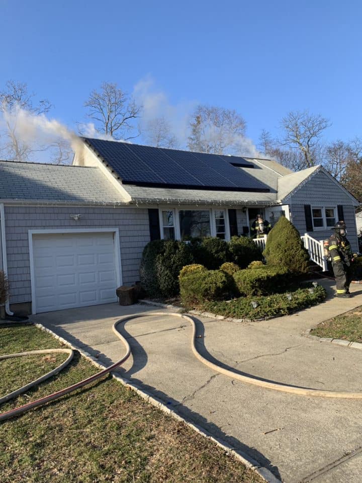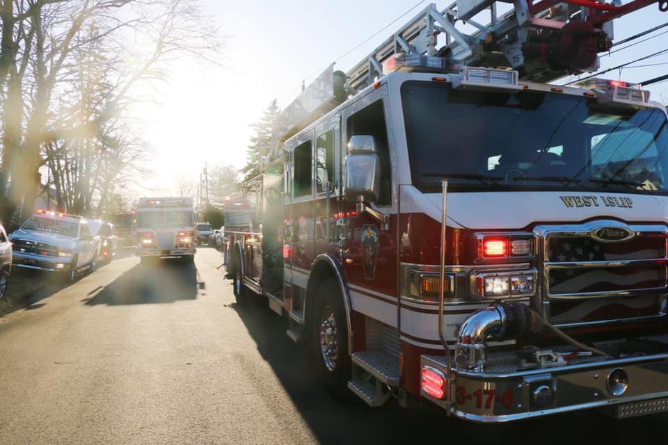 March 21, 2021 1724 hours. North Babylon NY: Firefighters from the North Babylon Fire Company assisted by surrounding departments responded to a house fire at 19 Oakrest Lane. The fire, which was located on the second floor of a two story private dwelling, was quickly extinguished by crews. One member was transported from the scene via ambulance complaining of chest pain. The cause is currently under investigation by Fire Marshals from the Town of Babylon. Information from the North Babylon Fire Co Facebook Page. Photos Via: Bryan Lopez and the NBFC FB Page.
