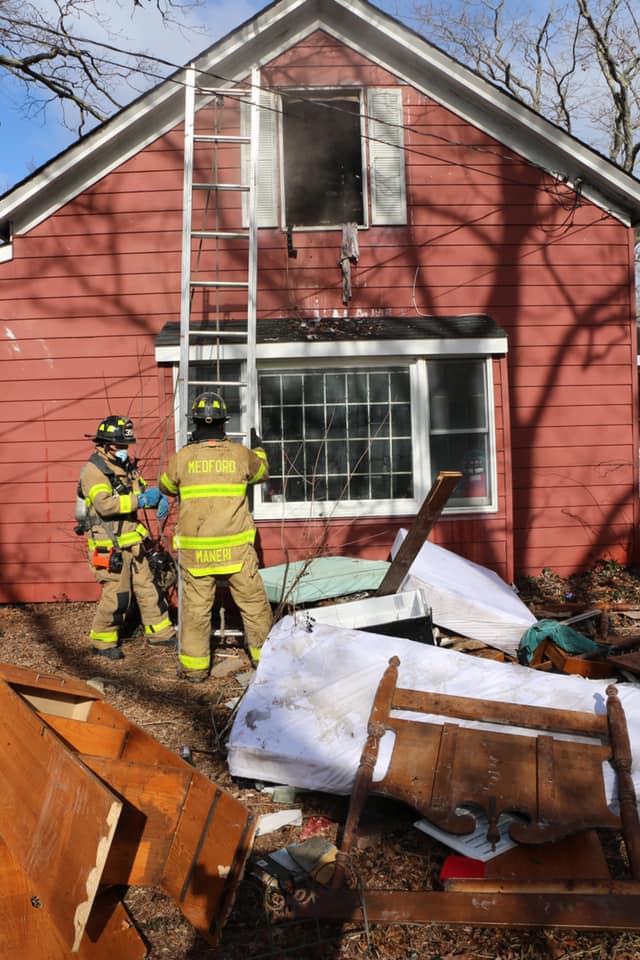 January 29, 2021 Firefighters from multiple area departments responded to a house fire, shortly after 10am at 133 Robinson Avenue in the Medford Fire District. Crews quickly extinguished a fire on the second floor, and no serious injuries were reported. The cause of the fire is currently under investigation by Fire Marshals from the Town of Brookhaven. Photos Via: Bryan Lopez
