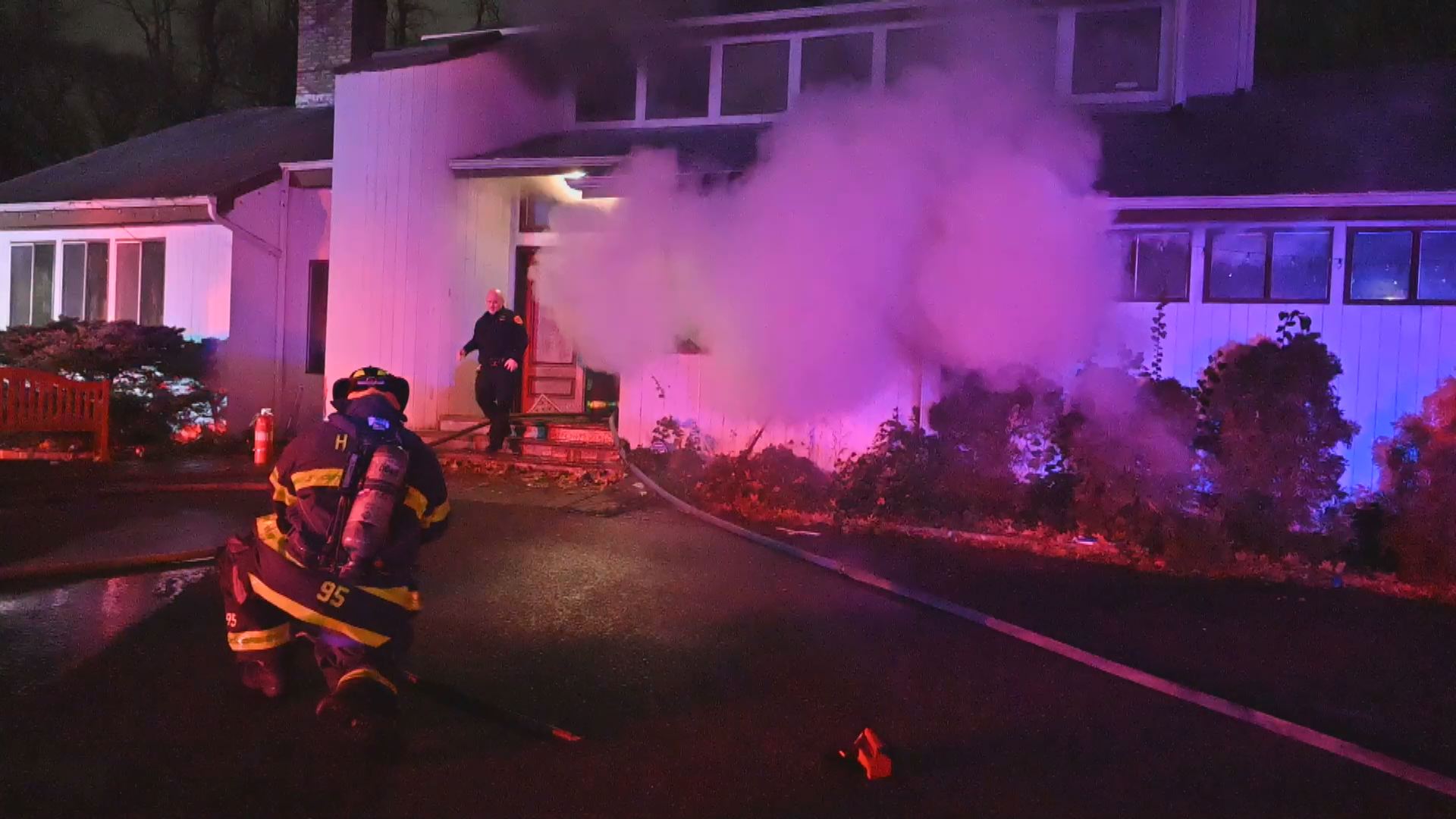 December 28, 2021 1845 hours. Huntington Manor firefighters responded to 2 Sweet Hollow Road for a report of a structure fire. First on scene Chief Brady advised of smoke coming from the home and reactivated for a working fire. First due Engine 3, secured a hydrant in front of the home and began an interior attack on the fire. Firefighters from Quint 6 stretched a 2nd line while firefighters from the Melville Fire Department stretched a 3rd line. The fire was declared under control in 40 minutes. Huntington Manor was assisted at the scene by the Melville, Huntington, Greenlawn and Dix Hills Fire Departments. Huntington Community First Aid Squad provided an E.M.S. standby. There were no reported injuries. Information came via the Huntington Manor Fire Department Facebook Page. Photo via Stringer News Service.