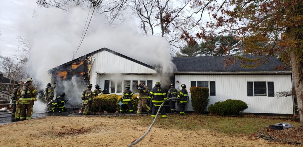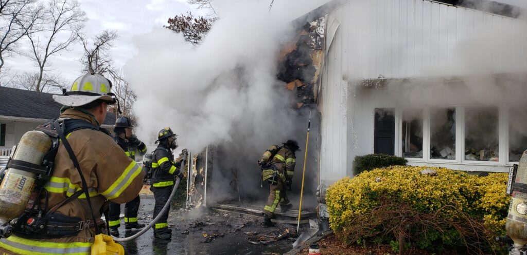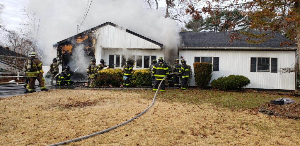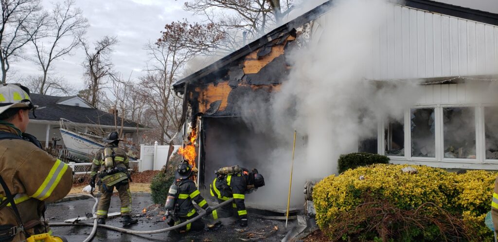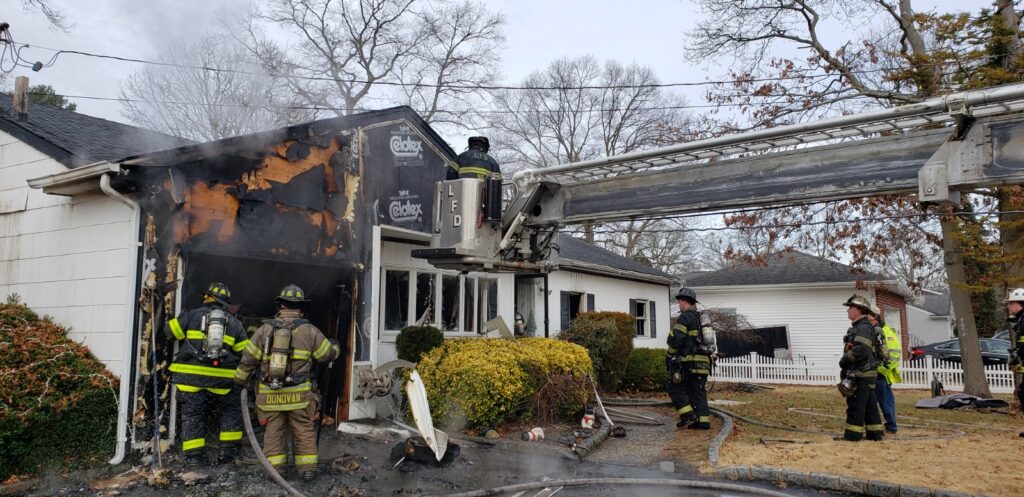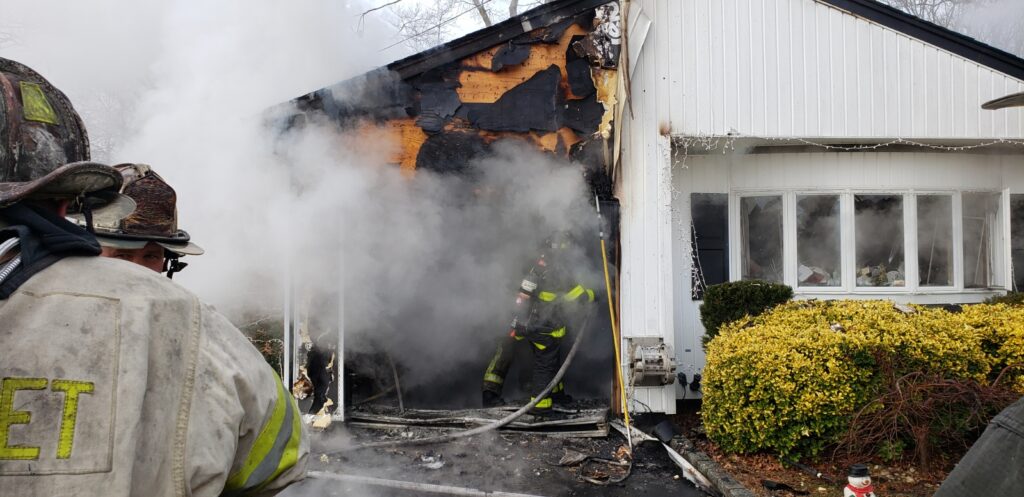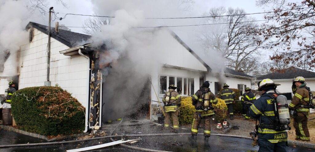 December 29, 2019 0907 hours. Lakeland Fire Department is called to respond to a report of a house on fire at 2282 Pond Road. Units arrive to find fire rolling out of a single car garage attached to a single story private dwelling. Mutual aid was requested from Ronkonkoma for an engine, Holbrook for a truck and Nesconset FD for a RIT. Crews stretched lines into the garage and the house and extinguished the fire, which had extended into the attic and the back of the house. There were no injuries. Fire Marshals from the Town of Islip are investigating. Photos courtesy of Bill Xikis