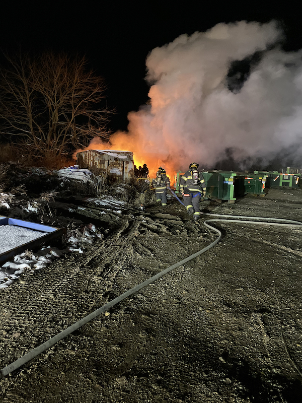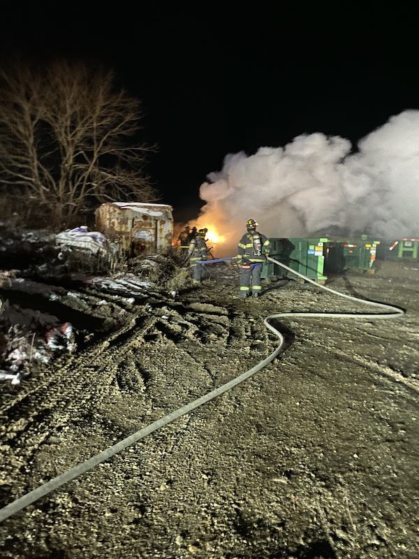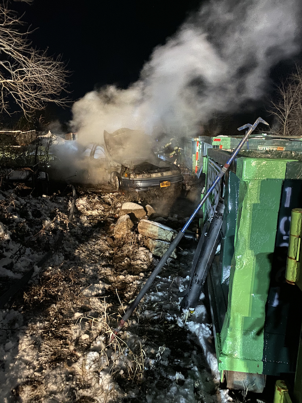 December 11, 2019 2045 hours. The Smithtown Fire Department is dispatched to the area of Plymouth Blvd and Old Northport Road in regard to smoke in the area. Units arrived and after a quick search, located a vehicle burning in the yard of Winters Brothers on Lawrence Road. The location of the vehicle required a long hose stretch but crews had the fire extinguished within a few minutes. Fire Marshals from the Town of Smithtown and Detectives from the Suffolk County Police Department Arson Squad are investigating. There were no injuries. Photos courtesy of Lou Scannon and the Smithtown FD.