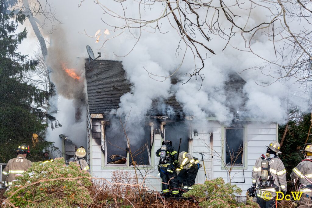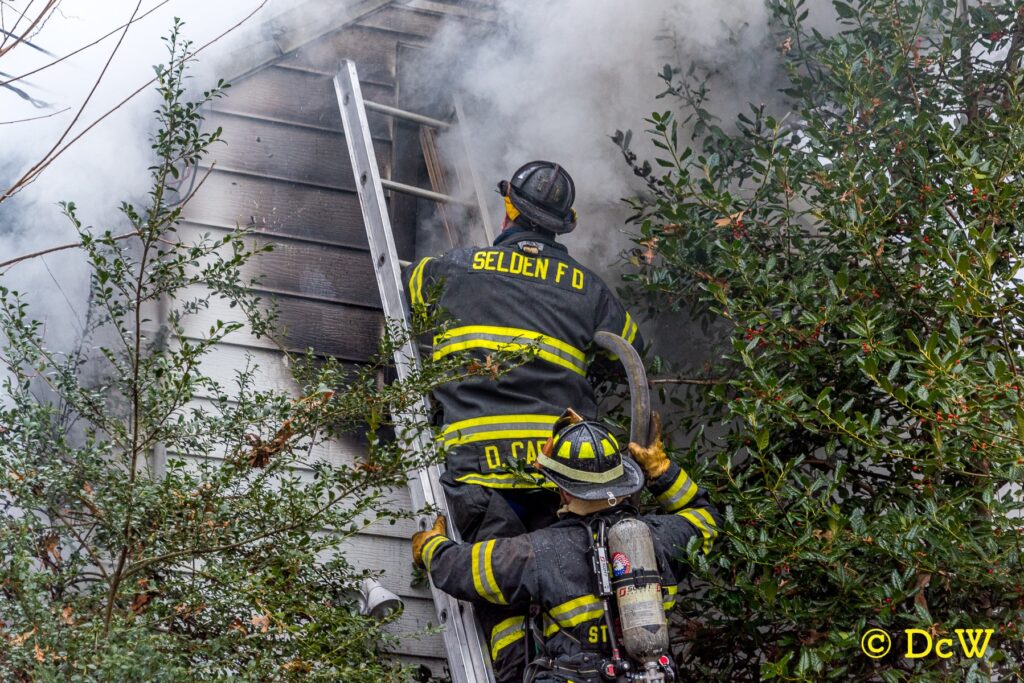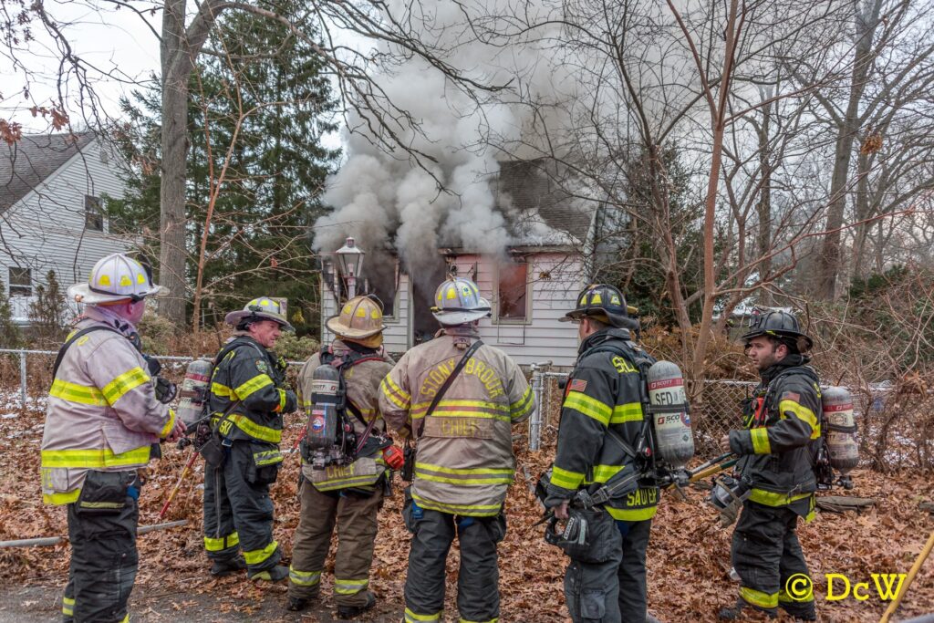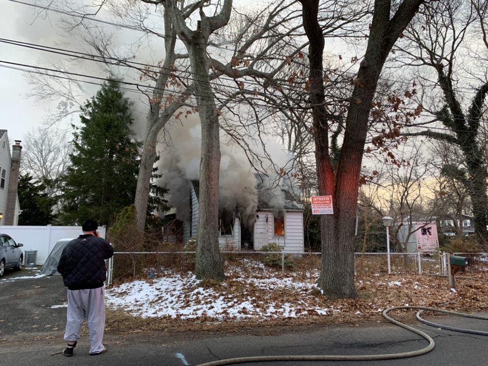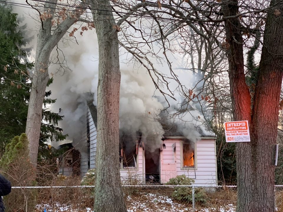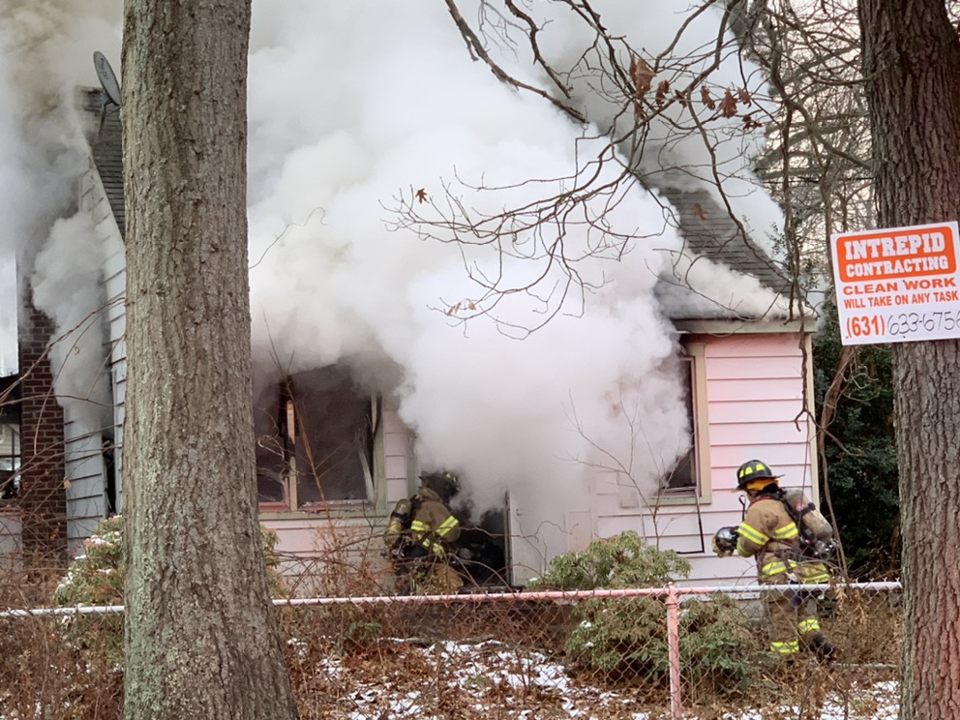 December 4, 2021 0725 hours. Suffolk Police 6th precinct officers respond to 57 North Washington Ave in regard to a report of a disturbance. The officer arrives and notes that there is an active fire within the house. The officer evacuates six occupants from the house while requesting the FD. Centereach Fire Department is activated shortly thereafter. Arriving FD units encounter heavy fire throughout a one and one half story wood frame dwelling. Crews knocked down the fire from the exterior with master streams and then entered the building with numerous hose lines to complete extinguishment. Mutual aid was provided at the scene by the Setauket Fire Department (engine), Nesconset Fire Department (RIT), Stony Brook Fire Department (engine) and the Selden Fire Department (engine). The Ronkonkoma Fire Department sent an engine to cover for Centereach for the duration of the incident. The fire was placed under control by Chief of Department Mayzus at 0903 hours. The last FD unit cleared the scene at 0955. The house is a total loss. Fire Marshals from the Town of Brookhaven and Suffolk Police Arson Squad Detectives are investigating. Photos courtesy of Justin Lee and Dennis Whittam.