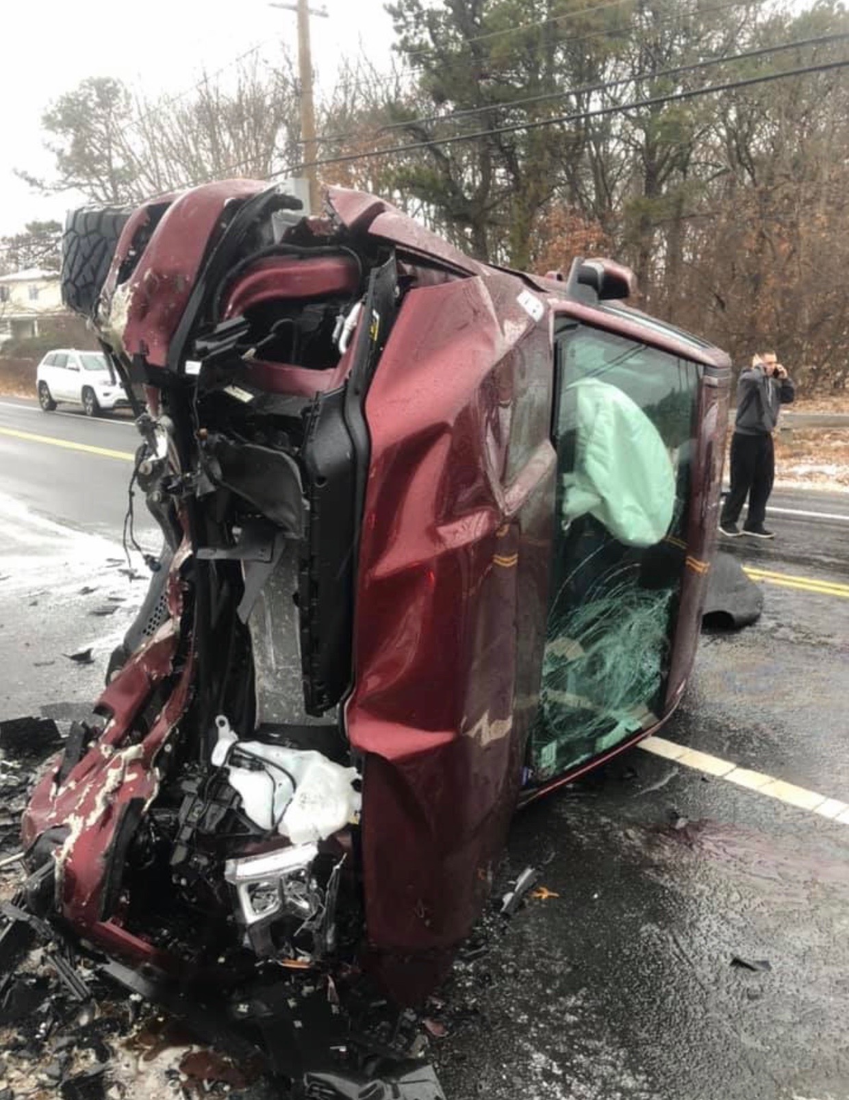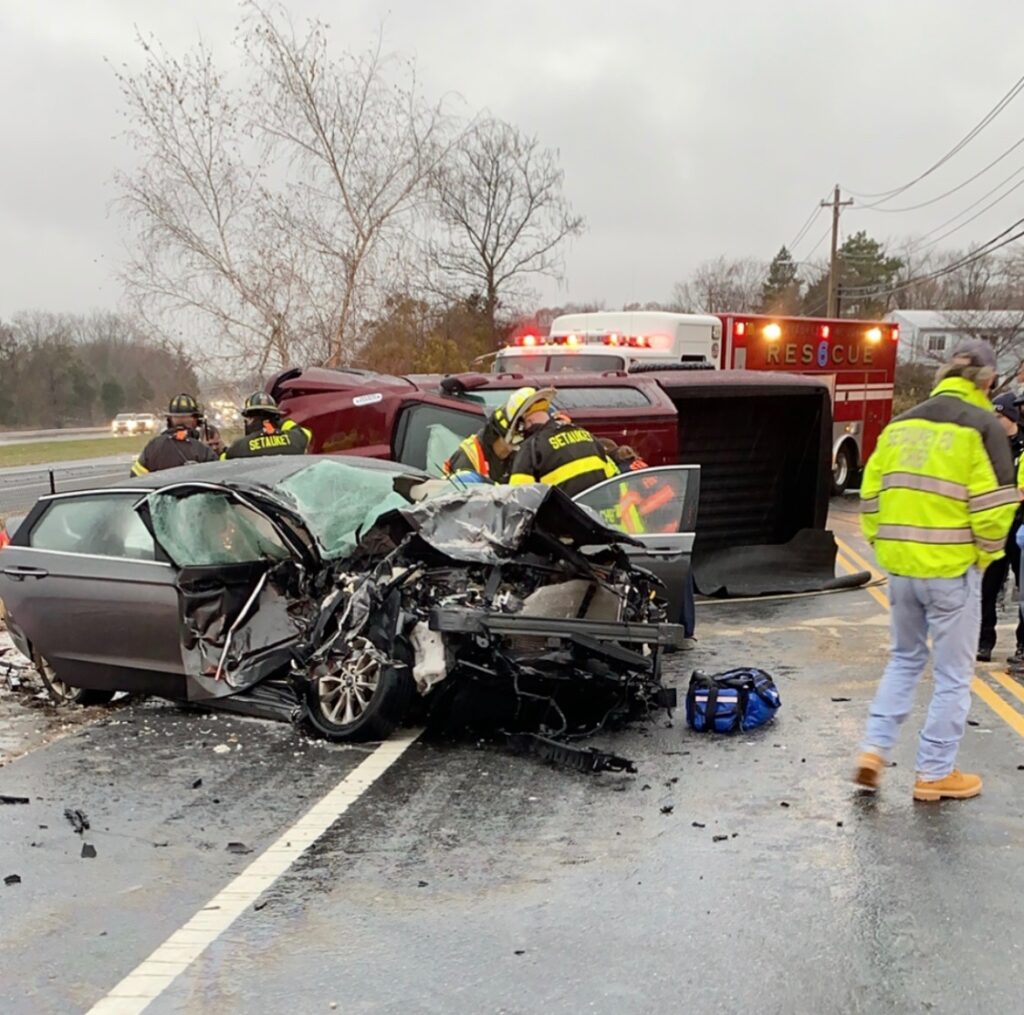 December 1, 2019 1446 hours. The Setauket FIre Department is called to respond to a report of a traffic collision at Balin Avenue and Bettyanne Drive. Crews arrived to find a crash involving two vehicles, one of which was on its side. The occupants of both vehicles had self extricated and were transported to the hospital via ambulance. Photos courtesy of Dave Werner.