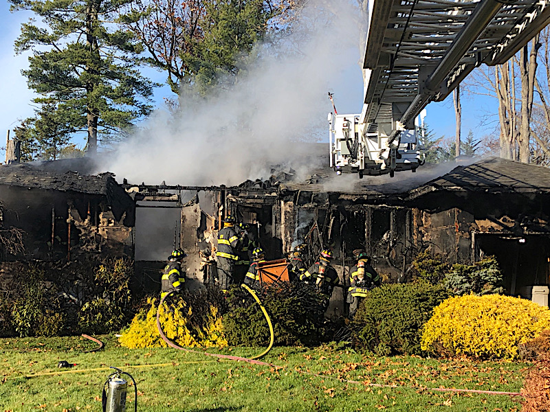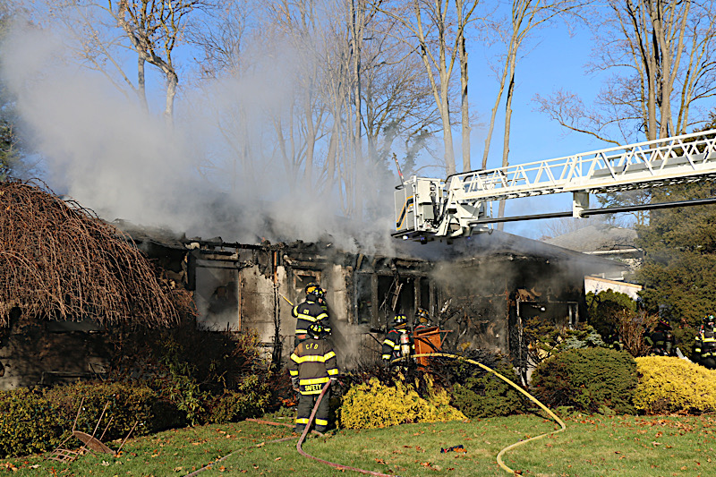 November 29, 2019 1358 hours. Commack Fire Department is activated to a report of a house fire at 68 Rensselaer Drive. Arriving units encountered a heavy fire condition in a single story wood frame dwelling. Crews stretched and operated four lines and were hampered by an active natural gas leak. Mutual aid was provided at the scene by the Dix Hills Fire Department. The Kings Park FIre Department sent a unit to cover and Commack Ambulance sent numerous units to the scene. The fire was placed under control at approximately 1445 hours. Fire Marshals from the Town of Smithtown Department of Public Safety are investigating. All photos courtesy of Bryan Lopez (Emergency Patches)